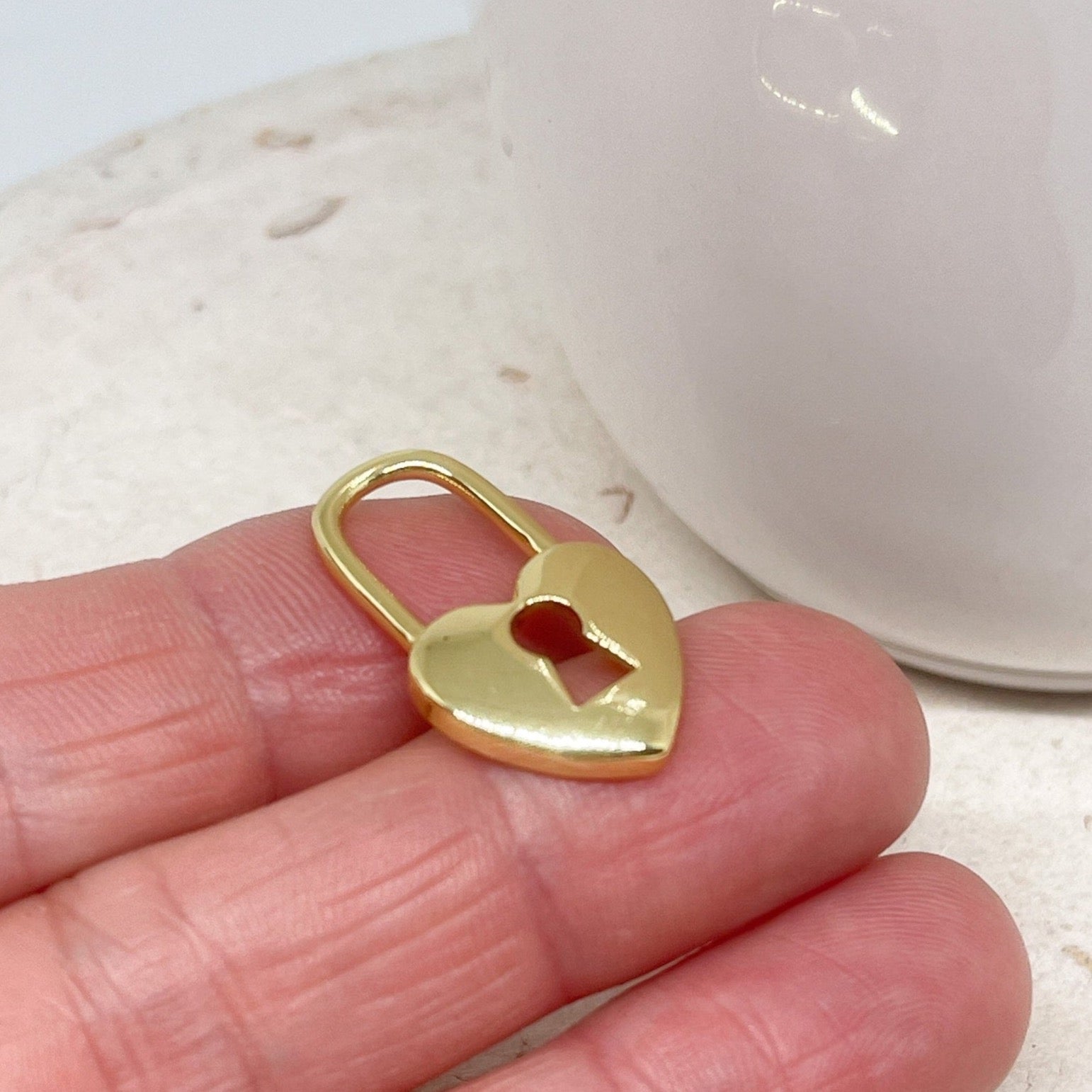 1 St. Schmuckanhänger Schloss mit Herz Charm 18 K vergoldet