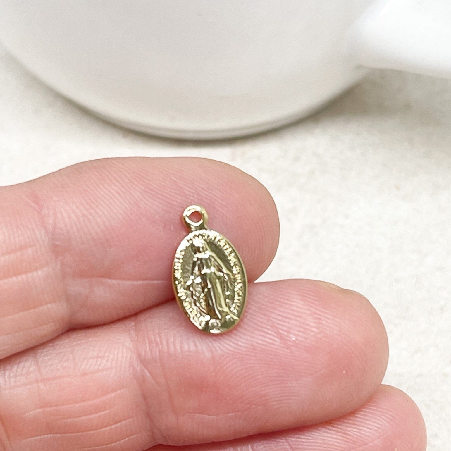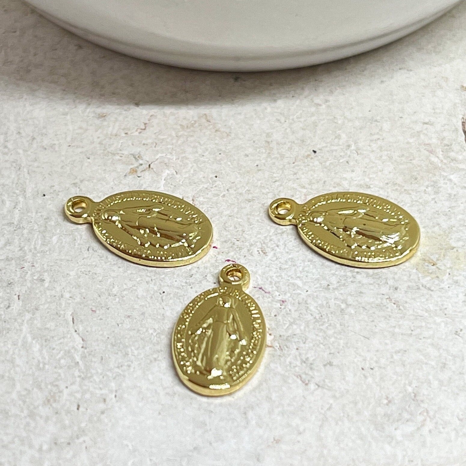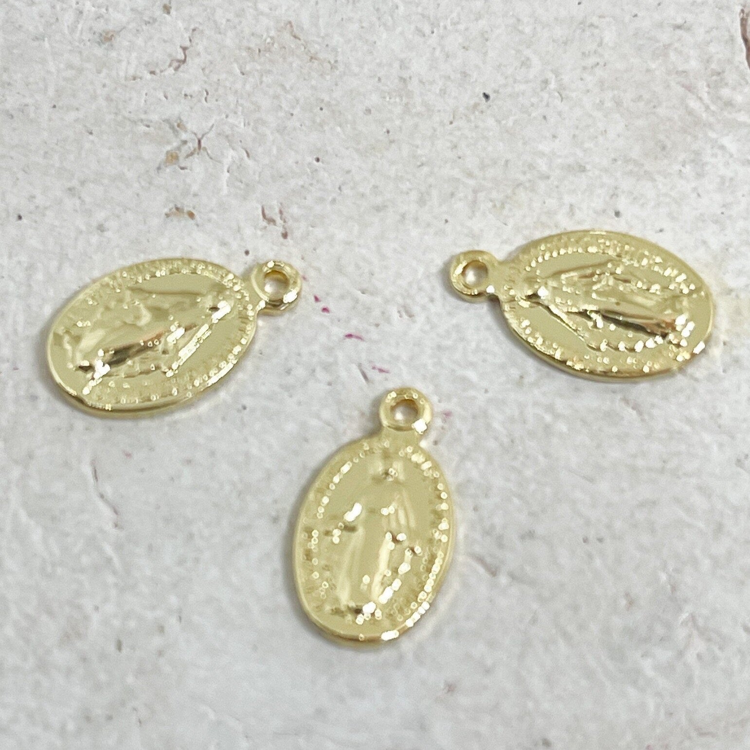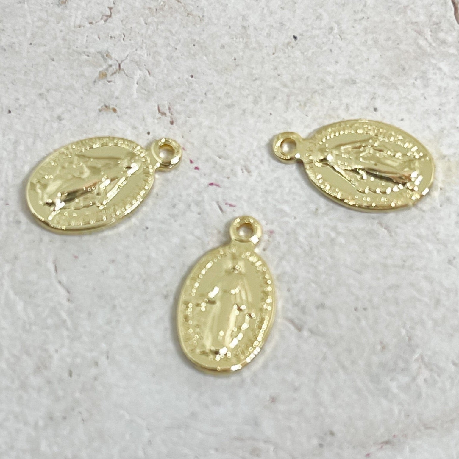 2 St. Messing Anhänger vergoldet Jungfrau Maria