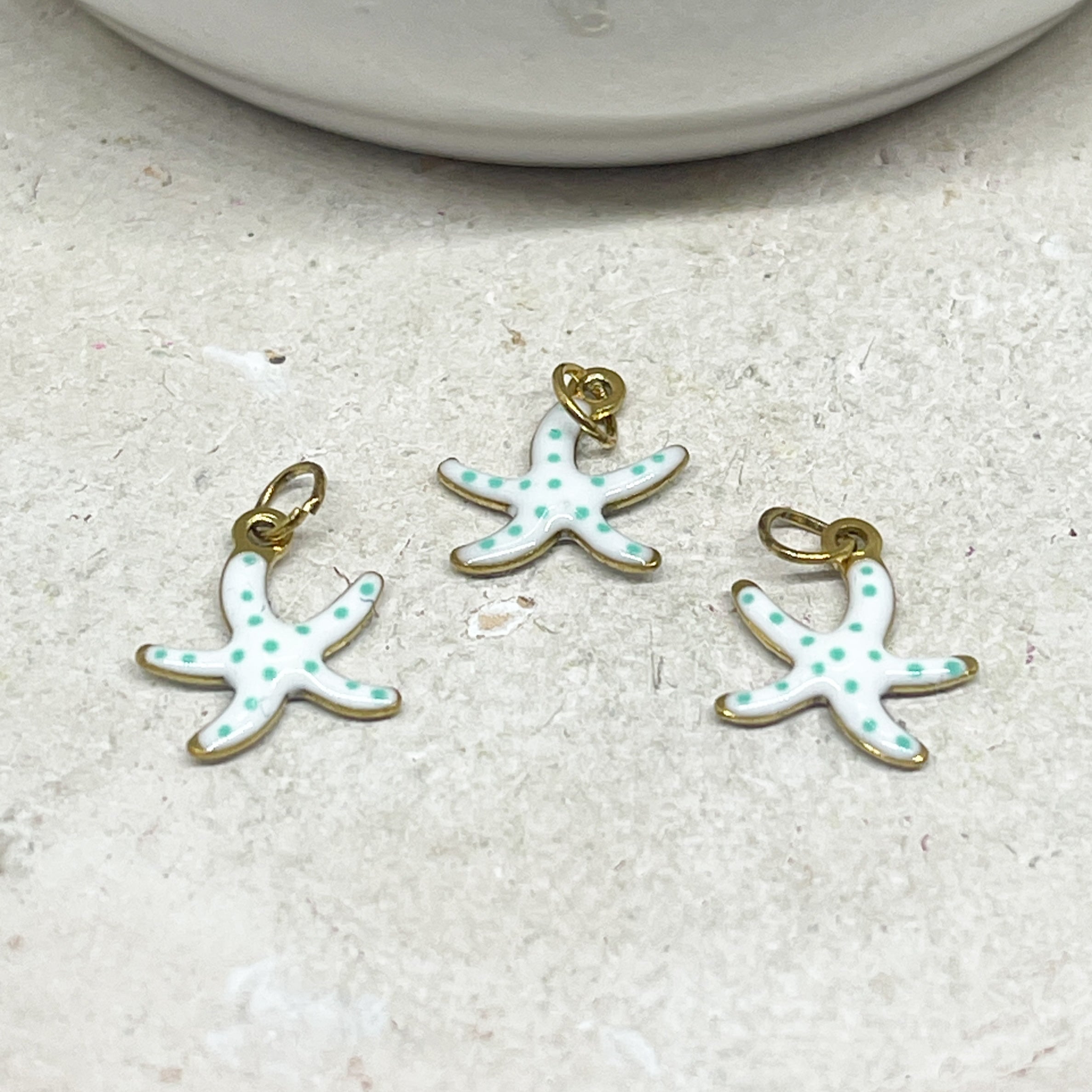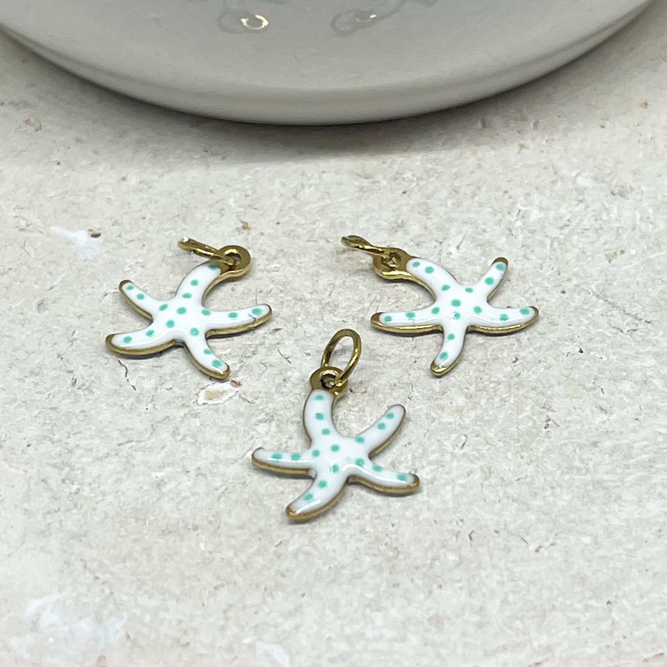 3 St. Seesterne Anhänger aus 18K vergoldetem Edelstahl, Ioonenbeschichtet und Emaille.