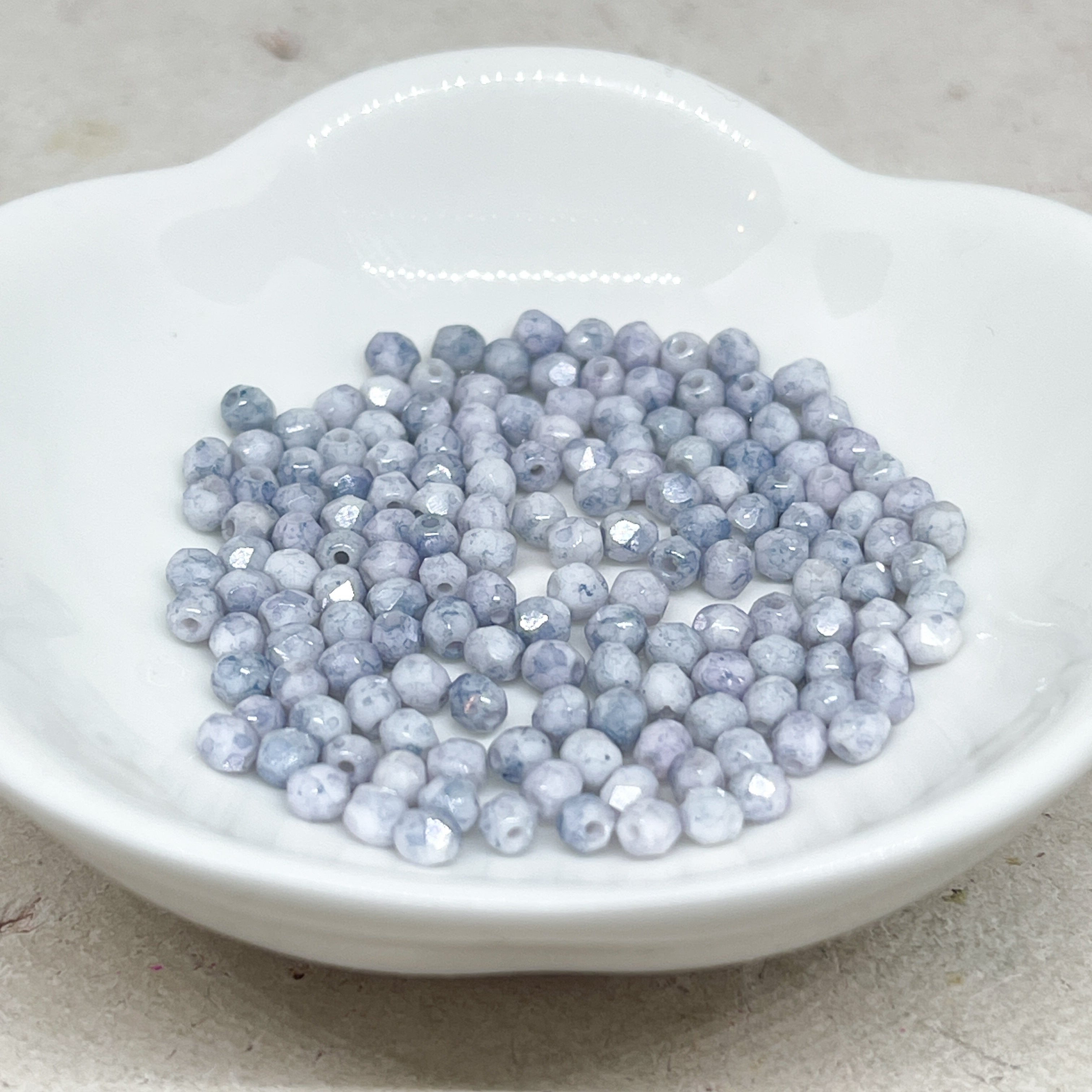100 St. Böhmische Glasschliffperlen 3mm - Blau, Grau, Weiß