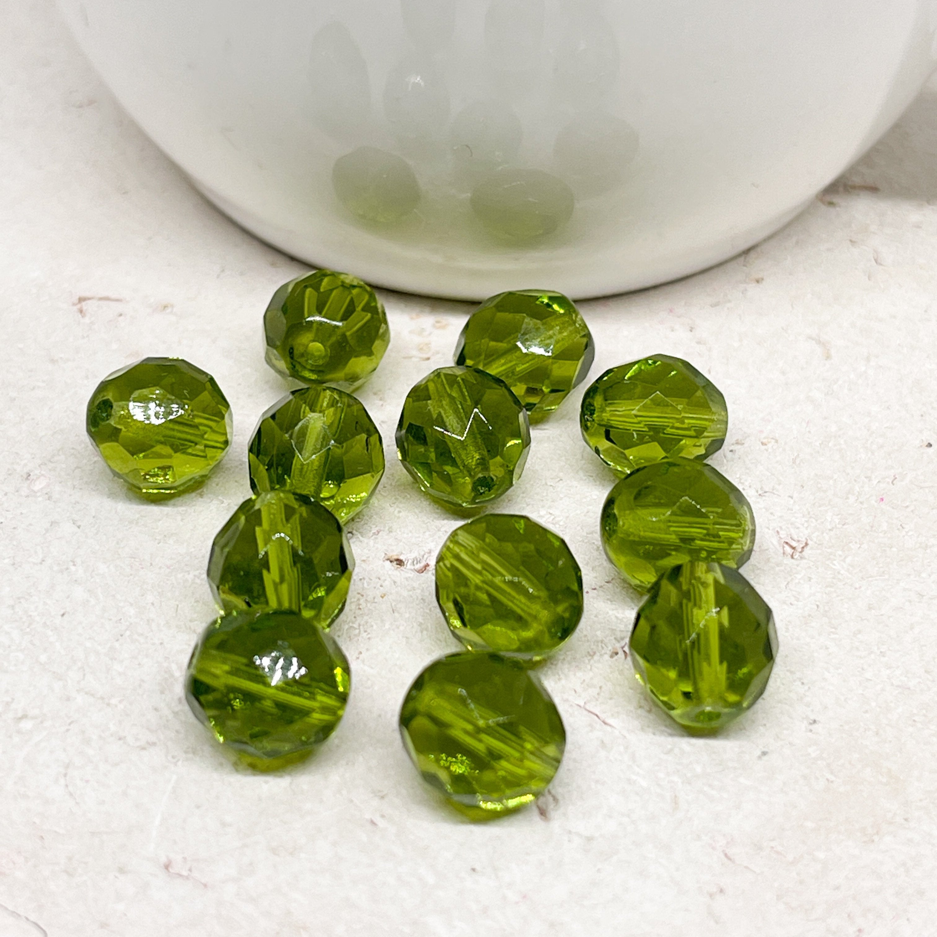 12 St. Böhmische Glasschliffperlen Olivgrün