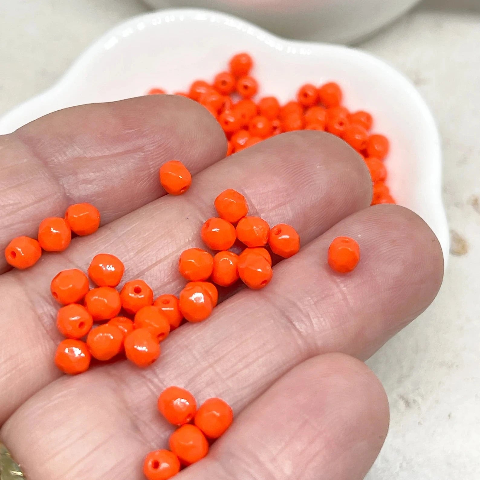 Böhmische Glasschliffperlen 4mm 100 St. Opaque Orange