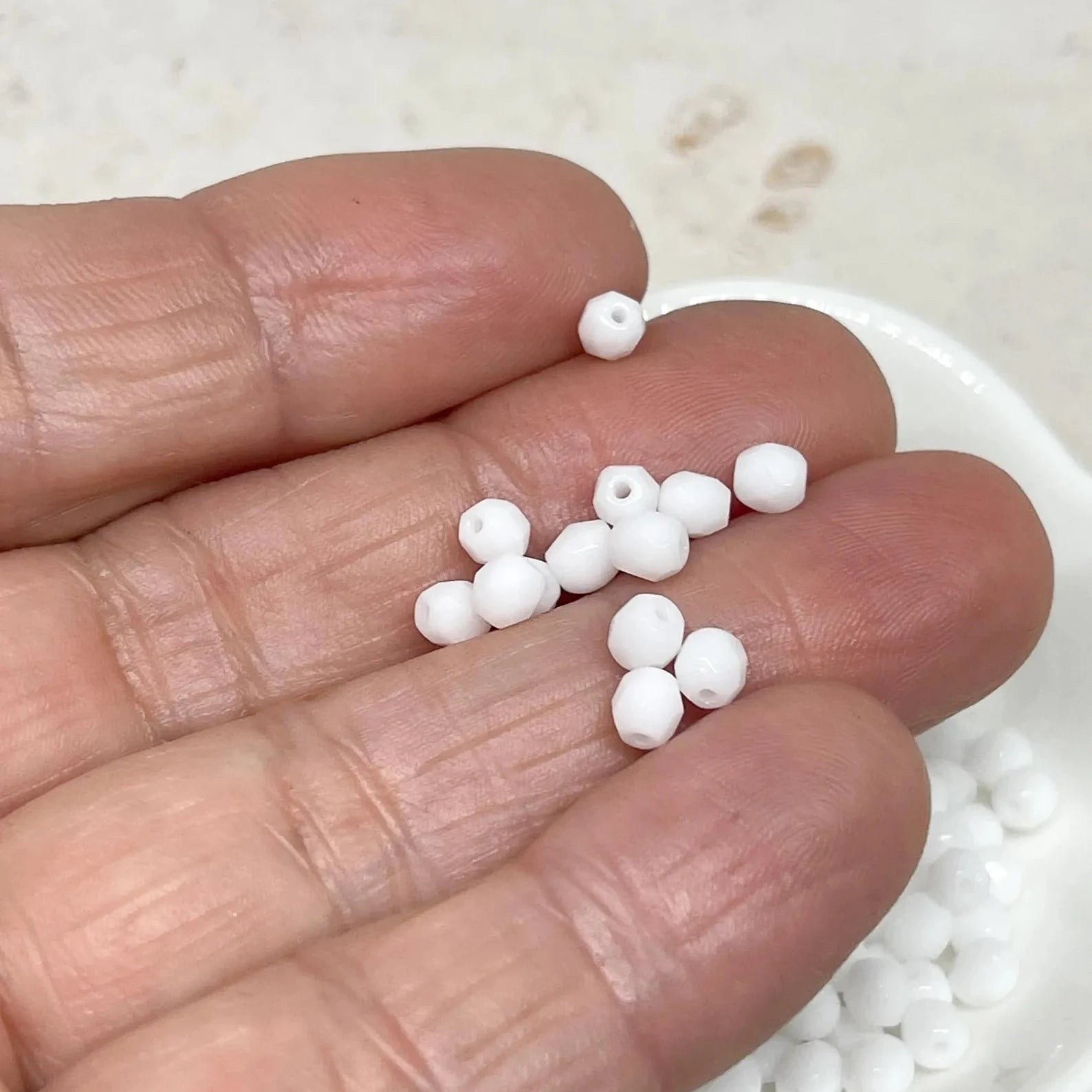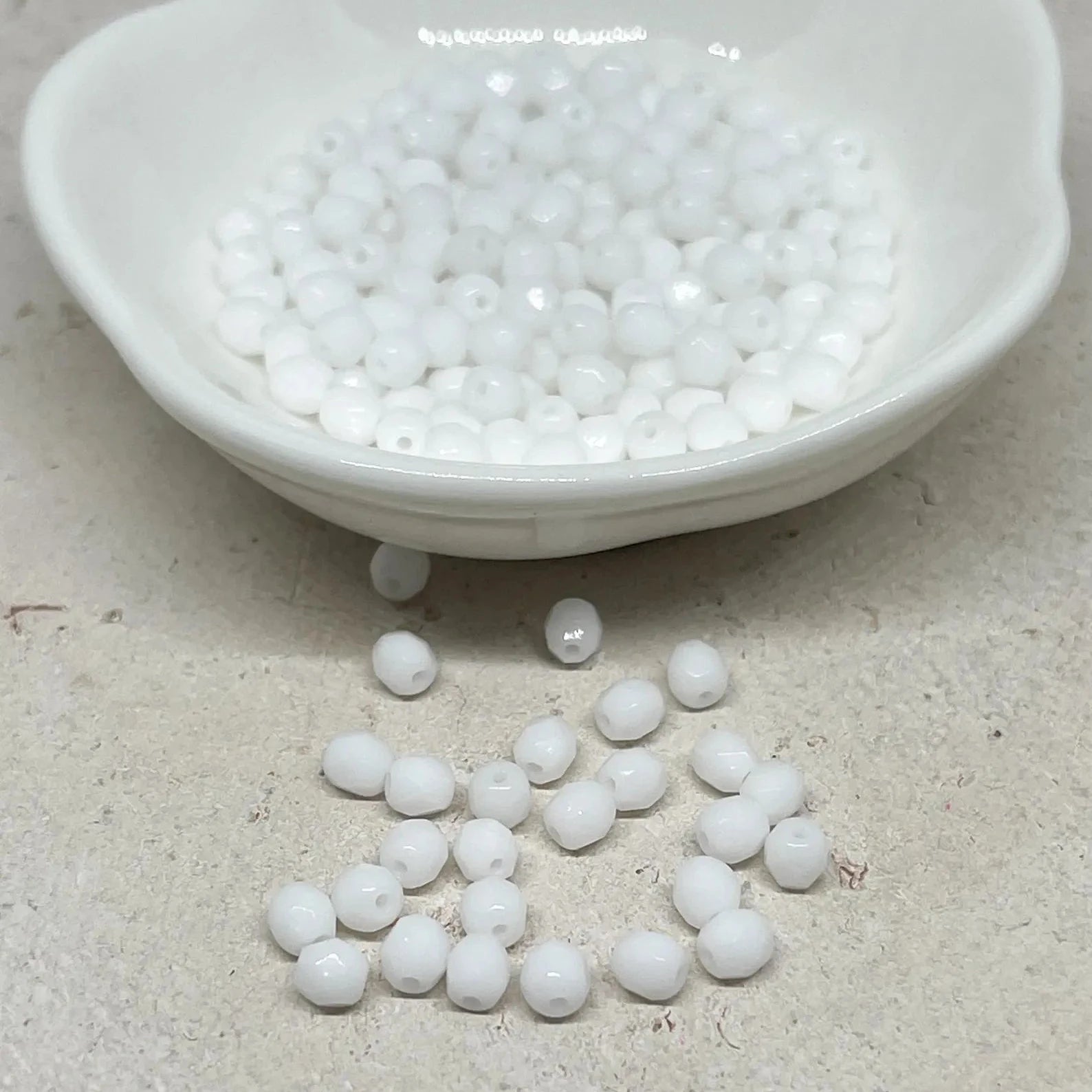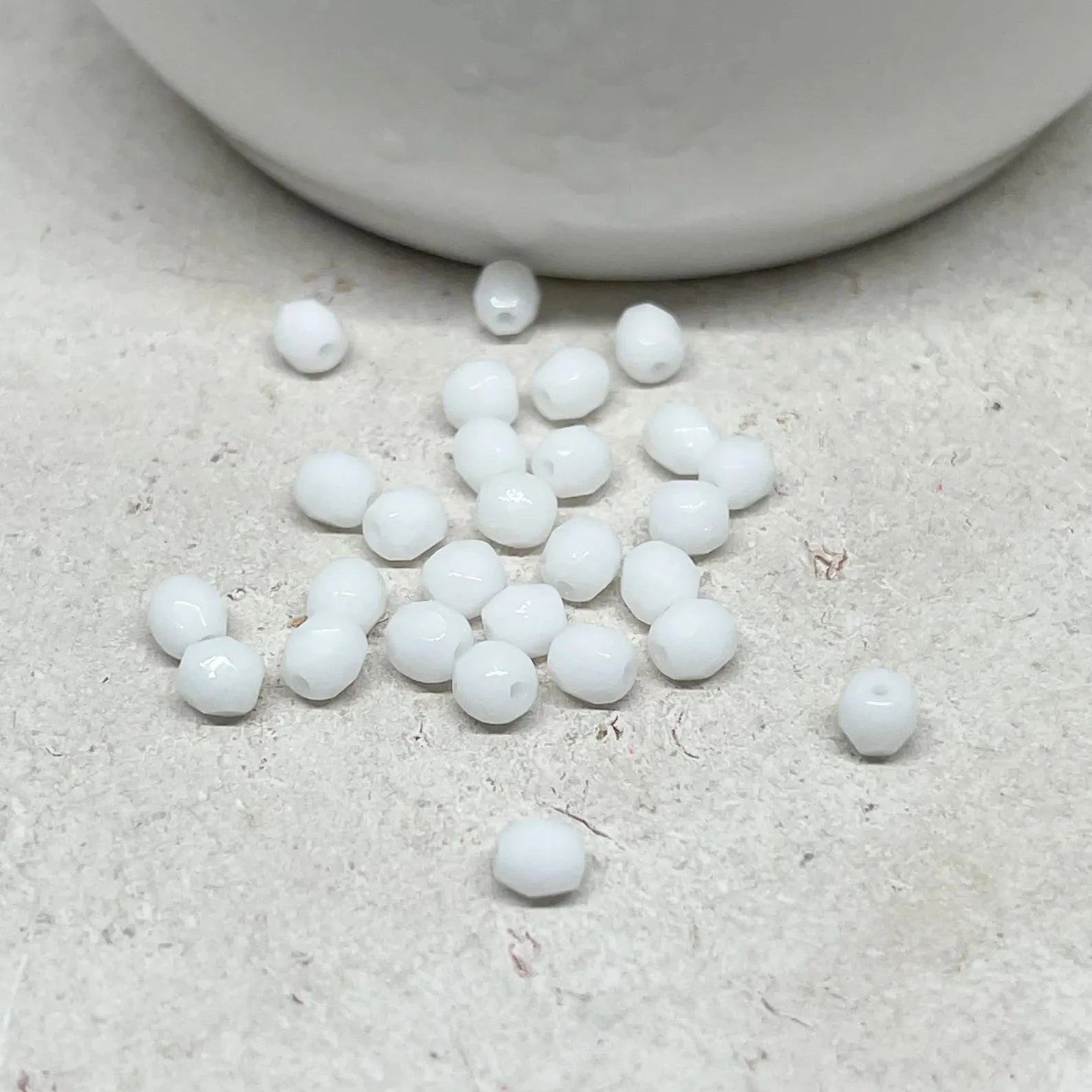 Böhmische Glasschliffperlen 4mm 100 St. Weiß Opak