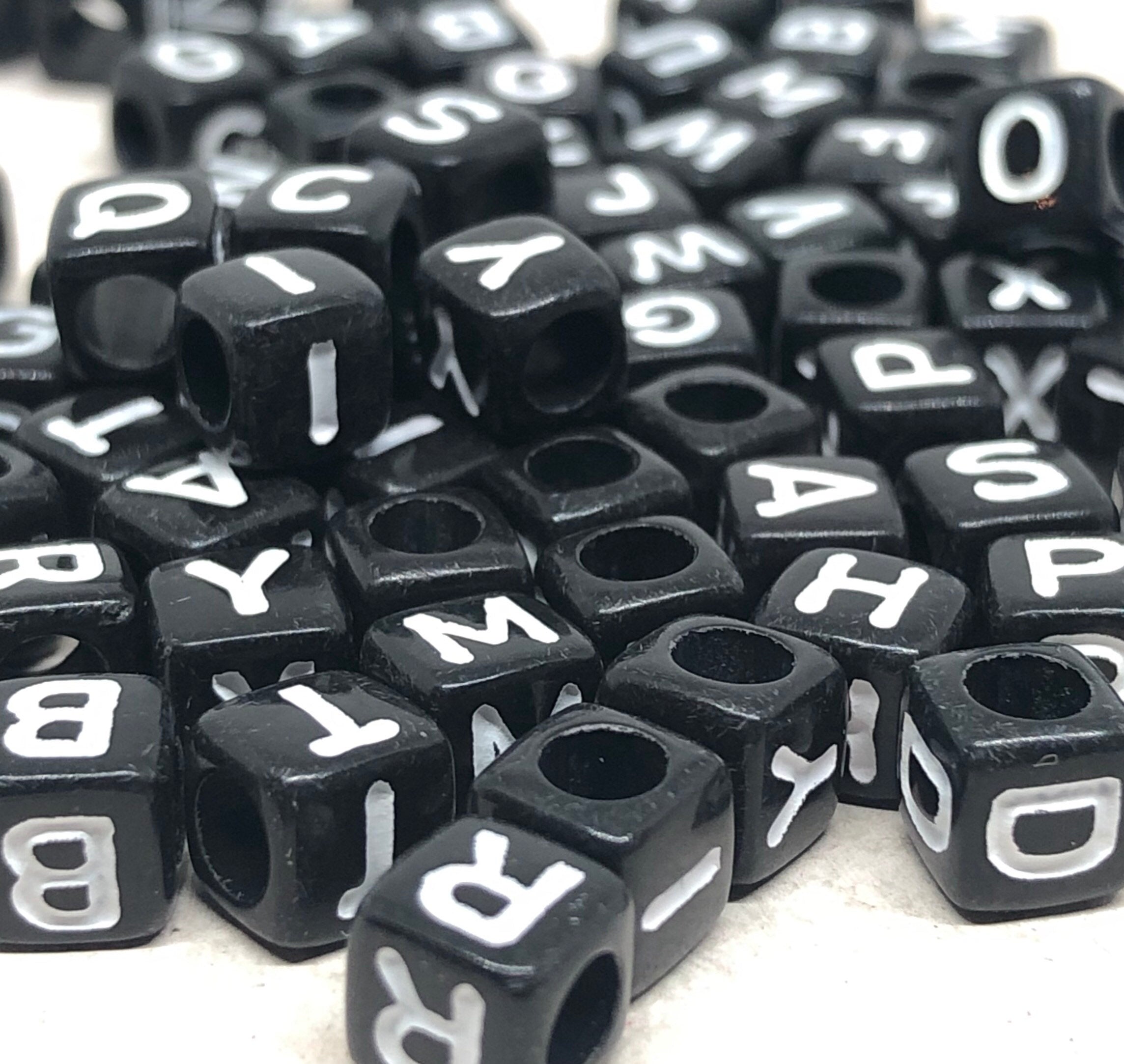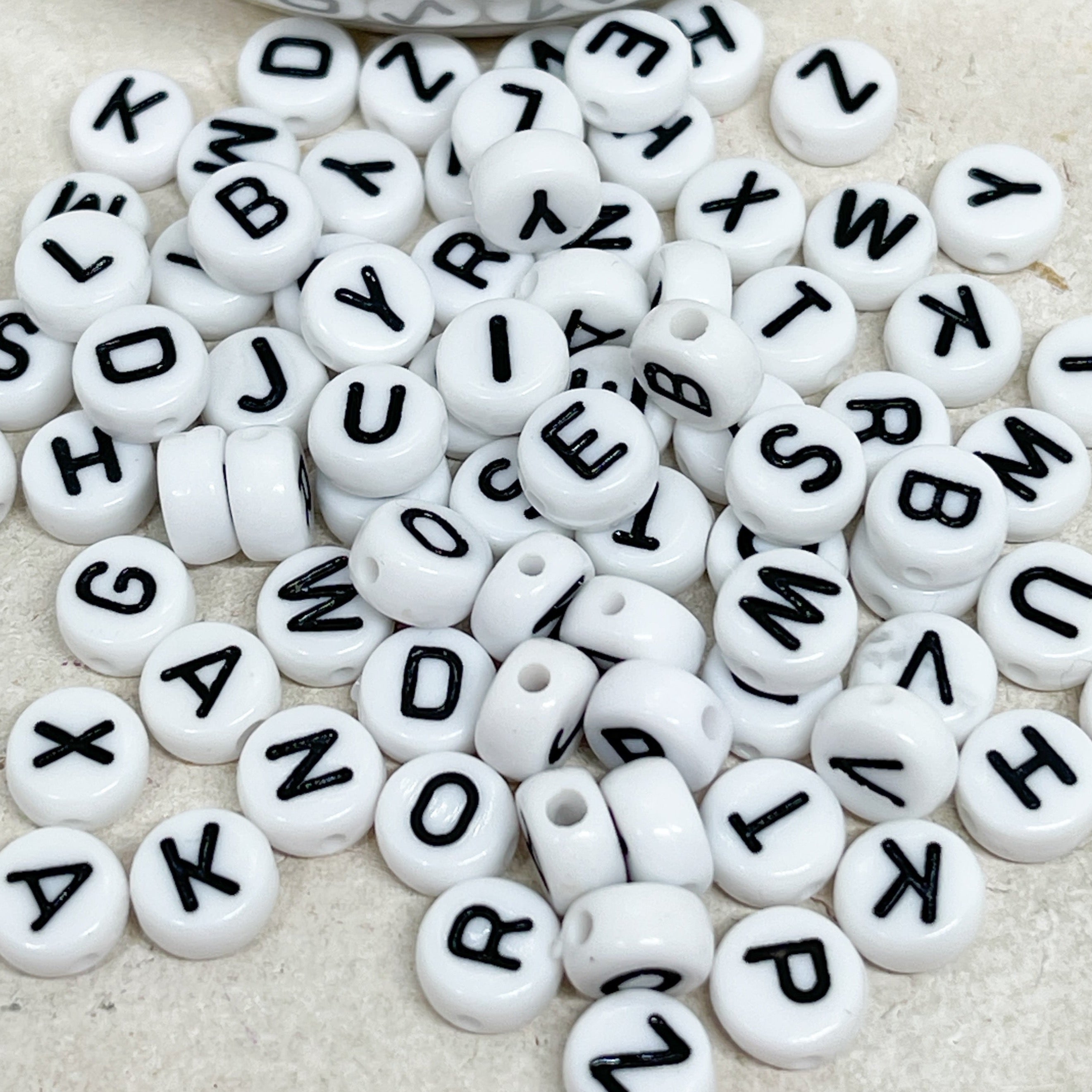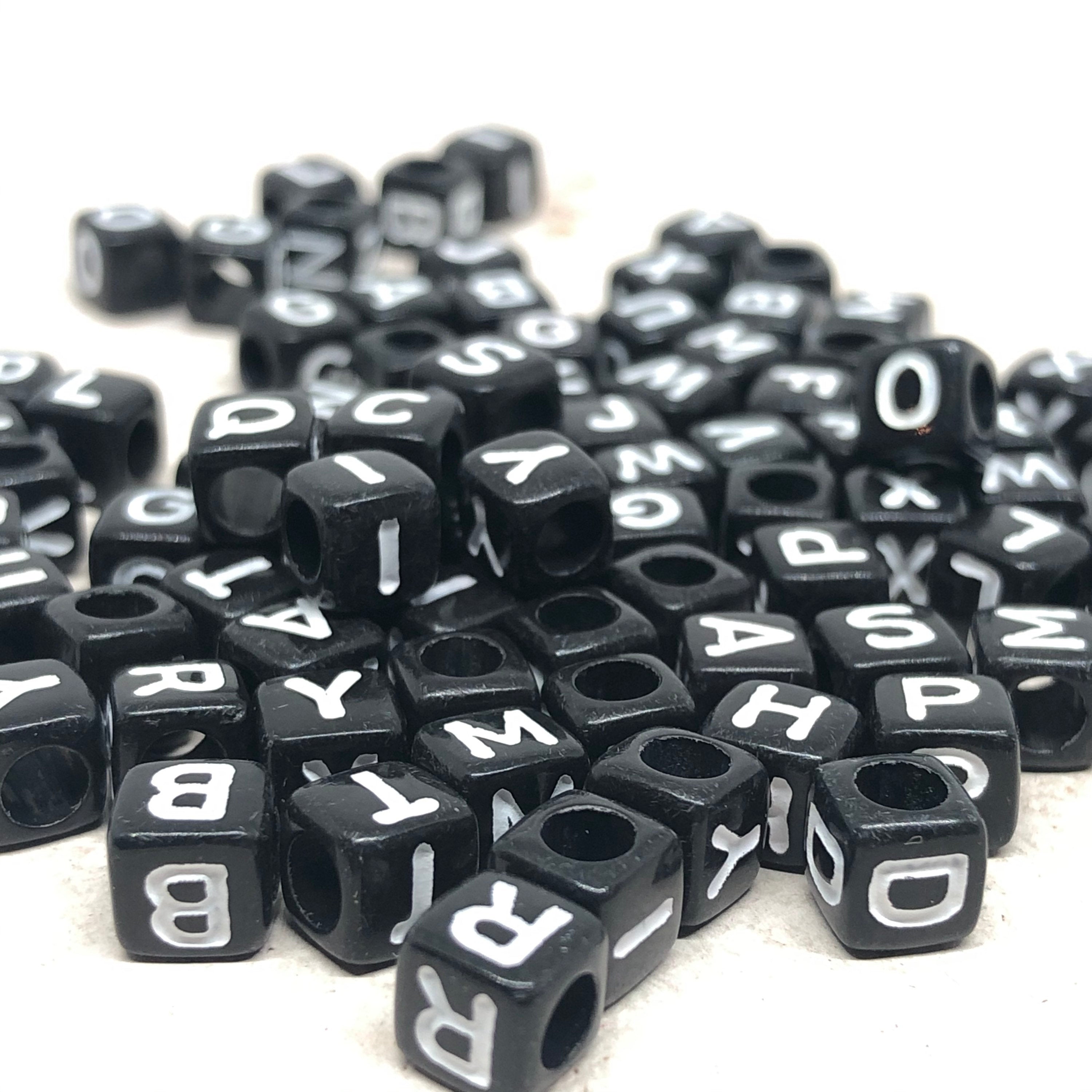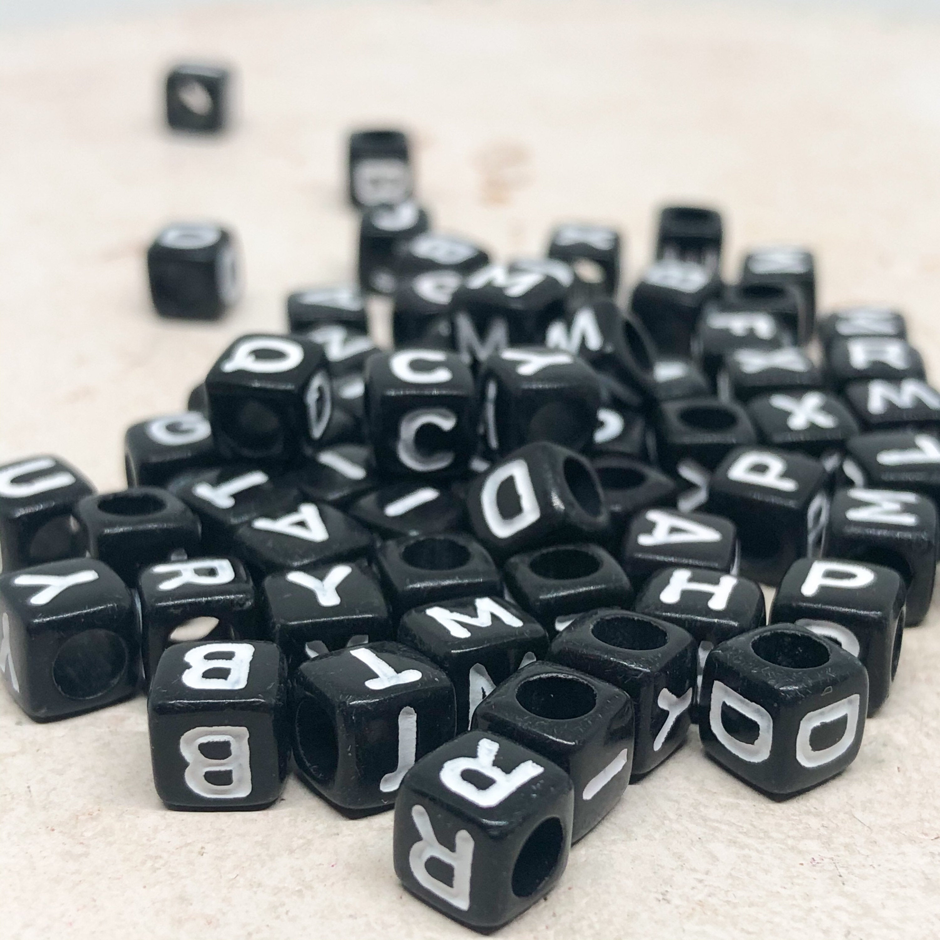 Die leichten Kunststoffperlen sind in verschiedenen Designs erhältlich: klassisch weiß mit schwarzer Schrift, bunte Mixe, goldfarbene Lettern, runde oder eckige Formen – ideal für kreative Botschaften und individuelle Geschenkideen.