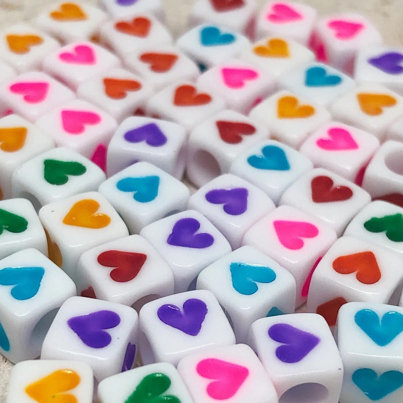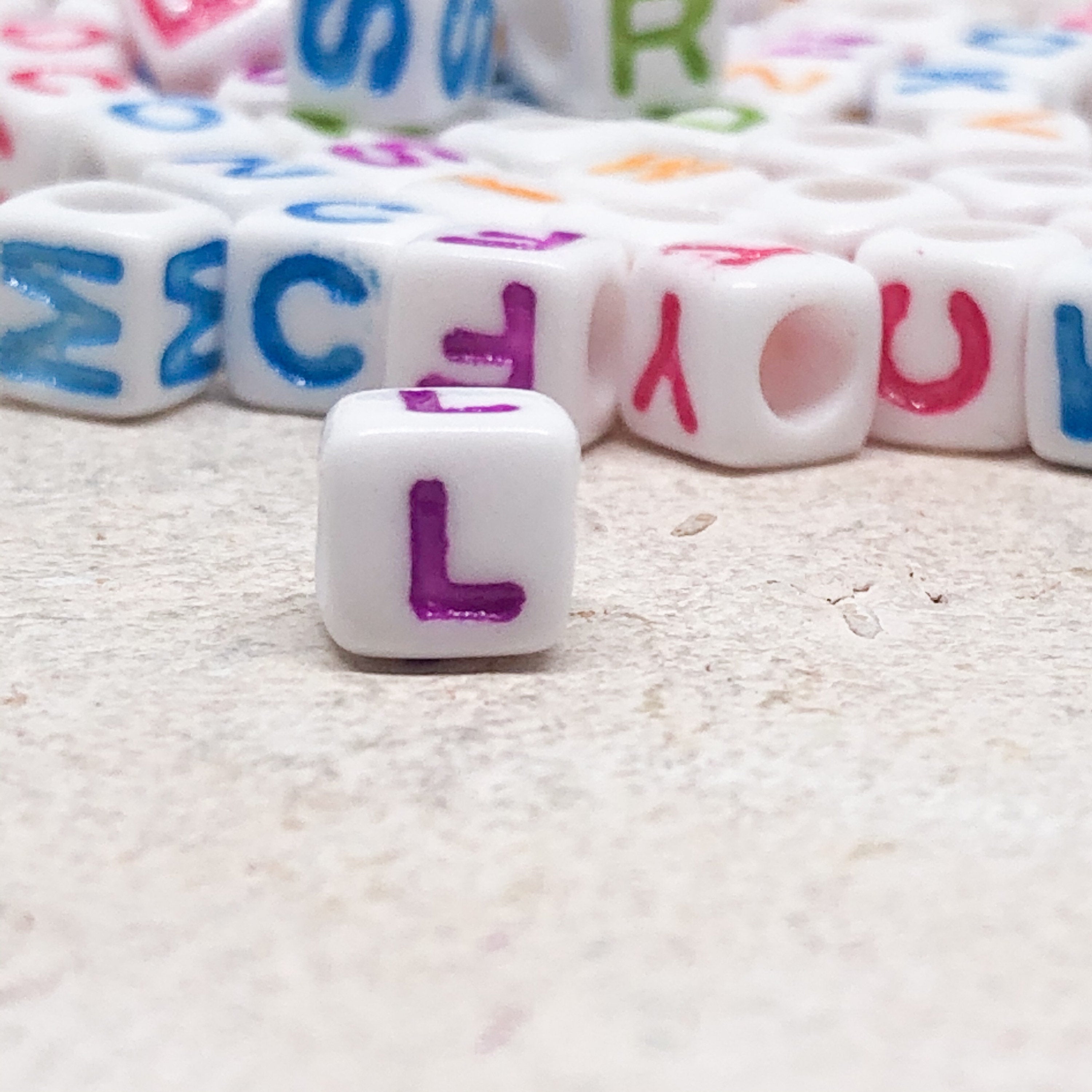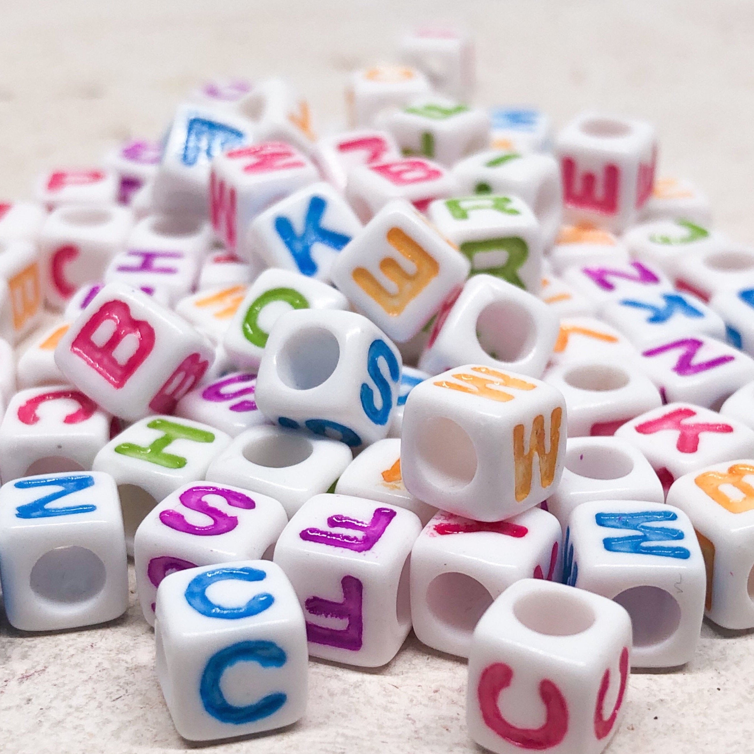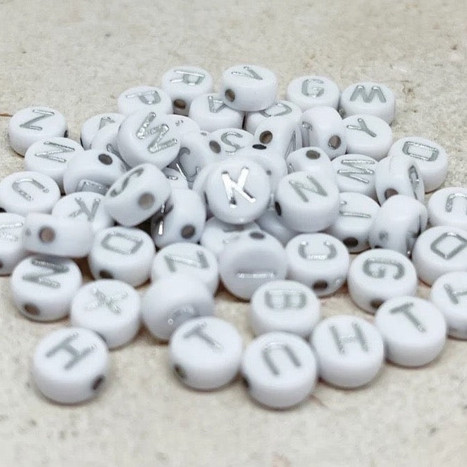 Die leichten Kunststoffperlen sind in verschiedenen Designs erhältlich: klassisch weiß mit schwarzer Schrift, bunte Mixe, goldfarbene Lettern, runde oder eckige Formen – ideal für kreative Botschaften und individuelle Geschenkideen.