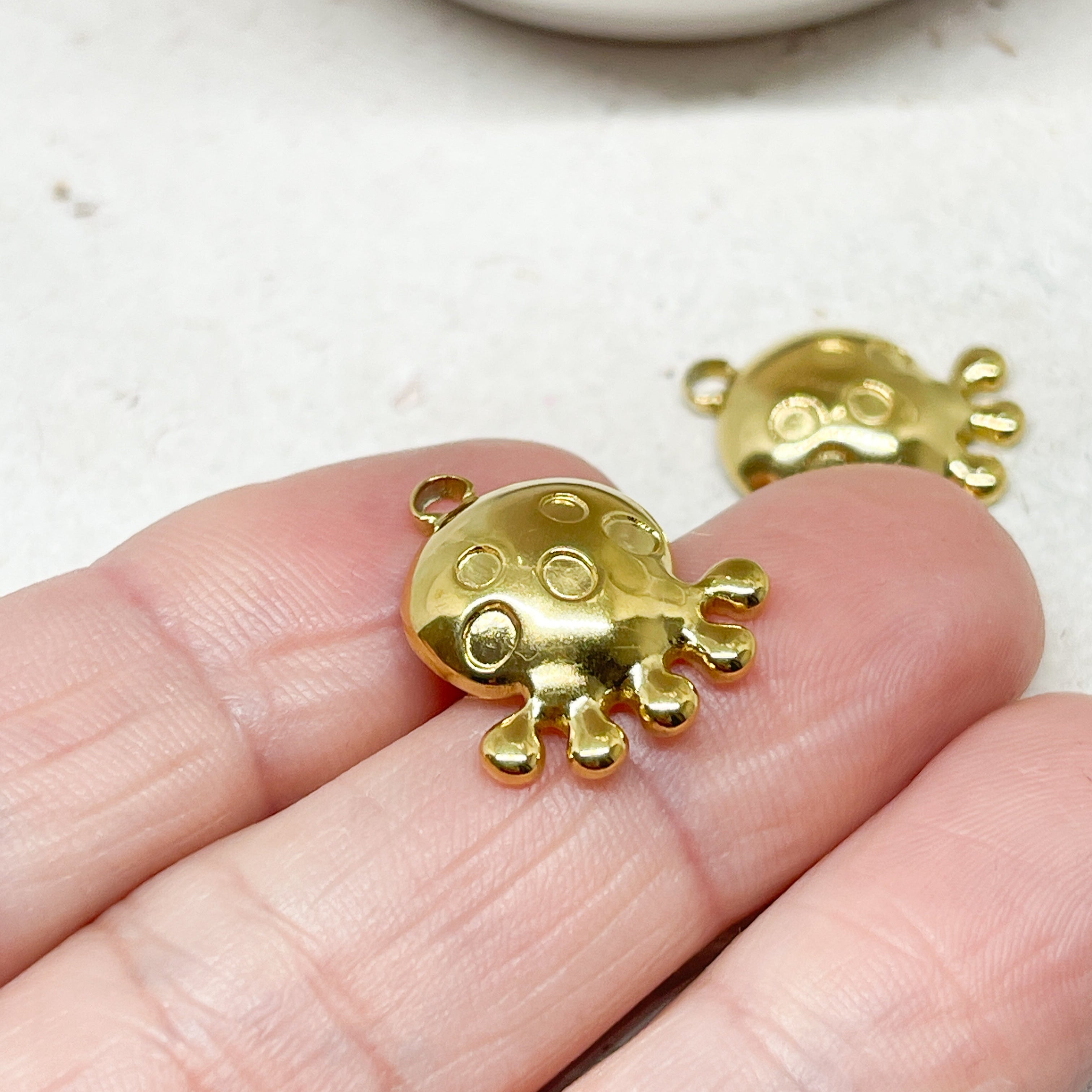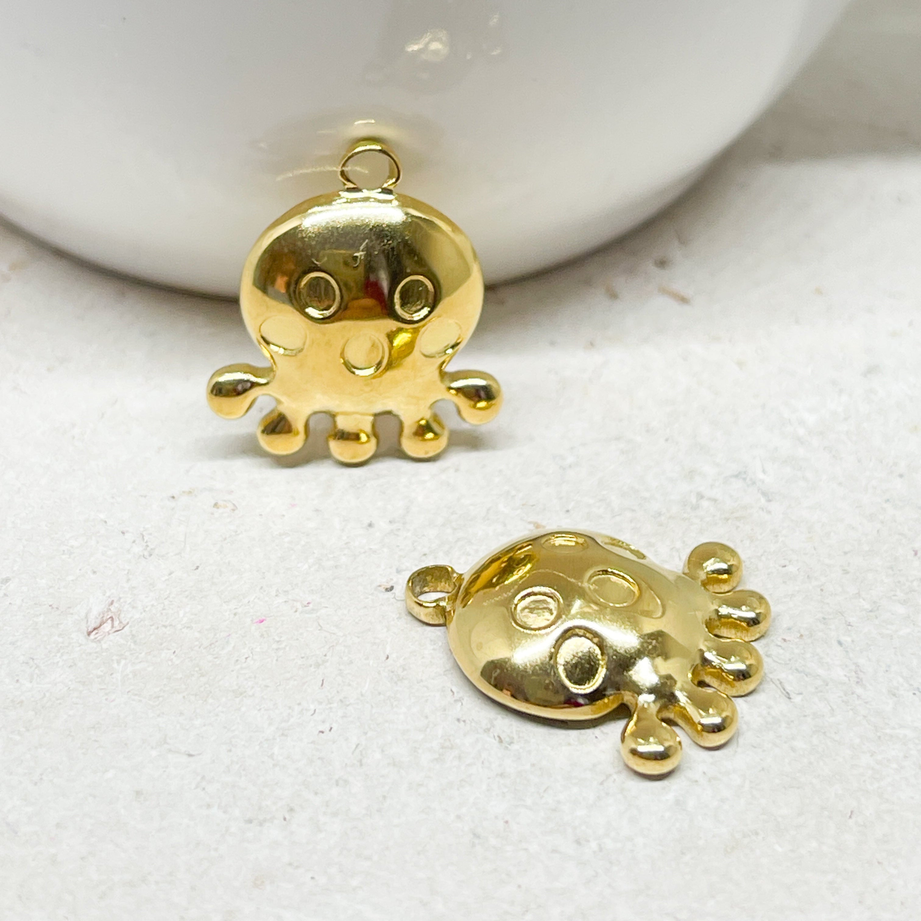 2 St. Oktopus Anhänger aus 304 Edelstahl 18 K vergoldet, Ionen Plattiert, wasserfest.