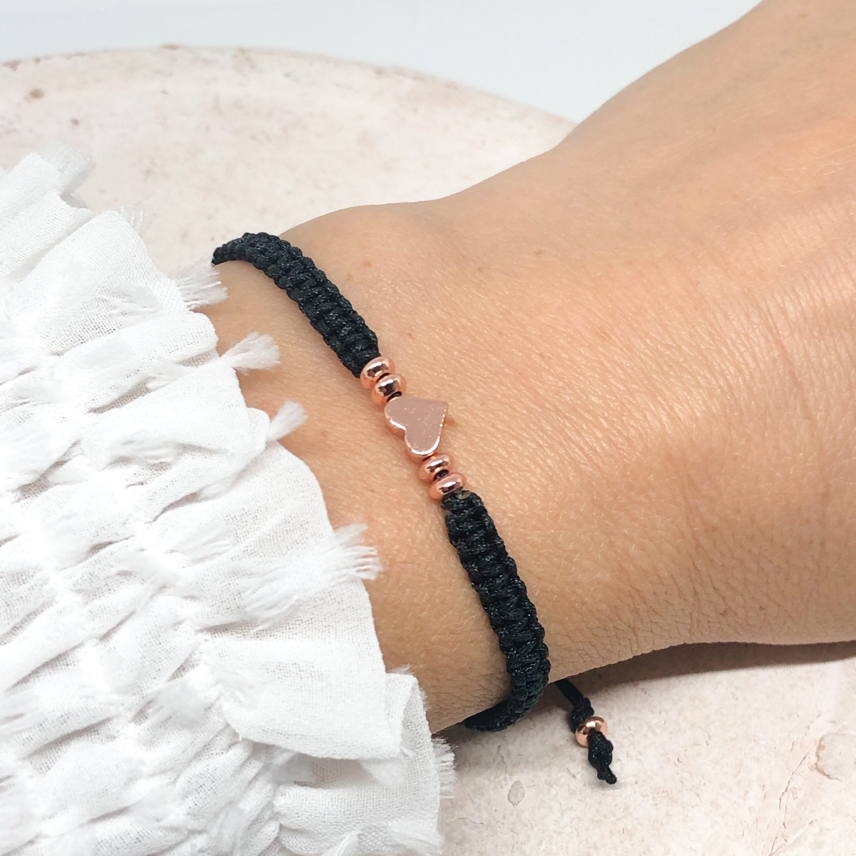 Zartes Armbändchen mit einem Herz und je zwei Roségoldfarbene Messing Perlen.