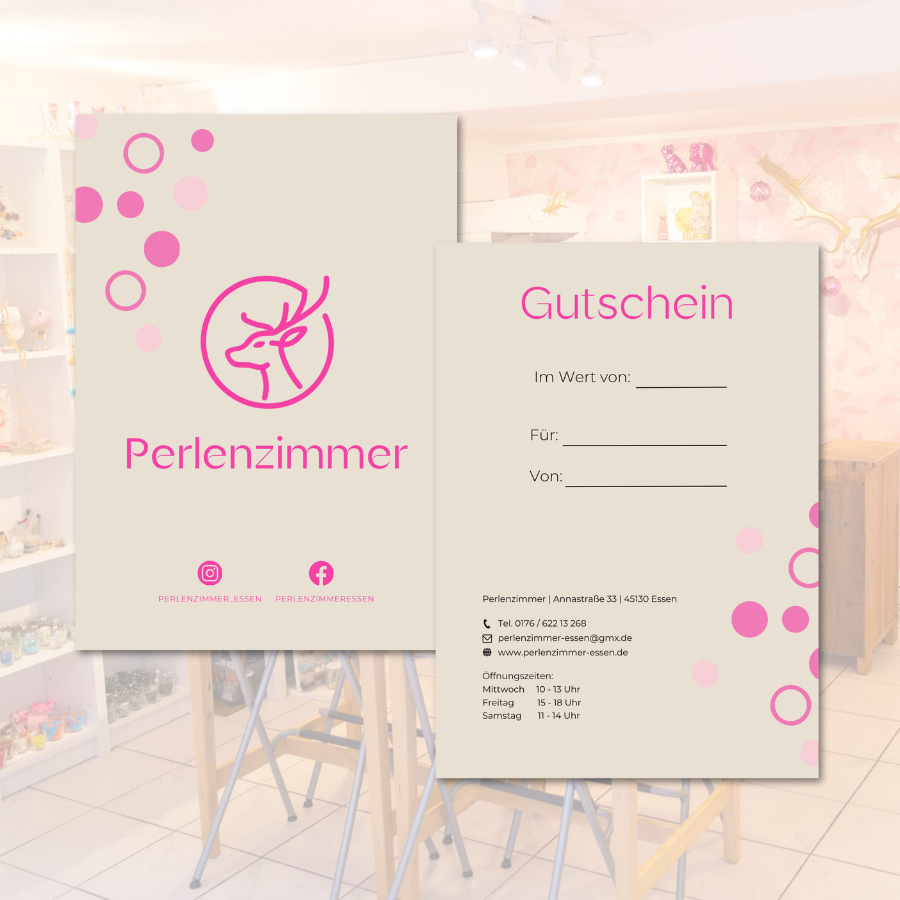 Perfekt, wenn du deinen Liebsten ein persönliches Einkaufserlebnis schenken möchtest. Der Gutschein kann direkt vor Ort in unserem Geschäft in Essen eingelöst werden – für Perlen, Bänder, Werkzeug und mehr.
