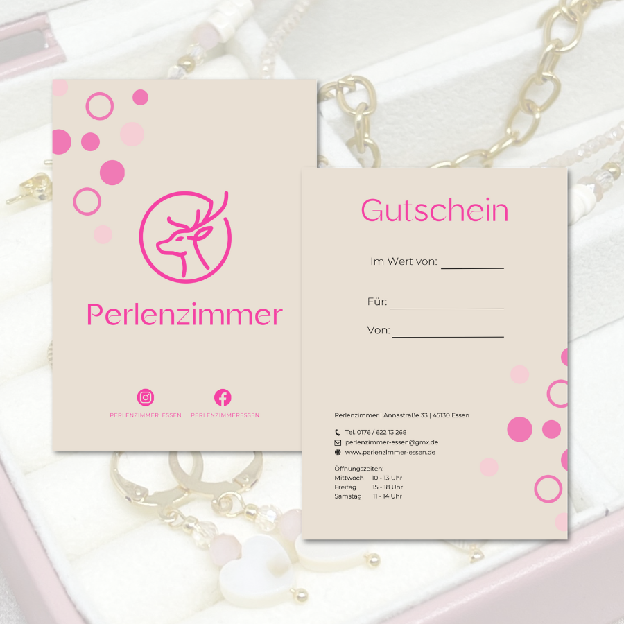 Bei Perlenzimmer bieten wir dir zwei Arten von Gutscheinen – ideal als Geschenk für alle, die Schmuck lieben und gerne kreativ werden: