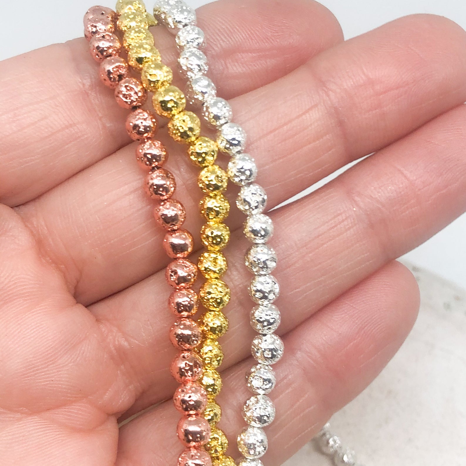 Lava Perle 6mm vergoldet, rosévergoldet, versilbert