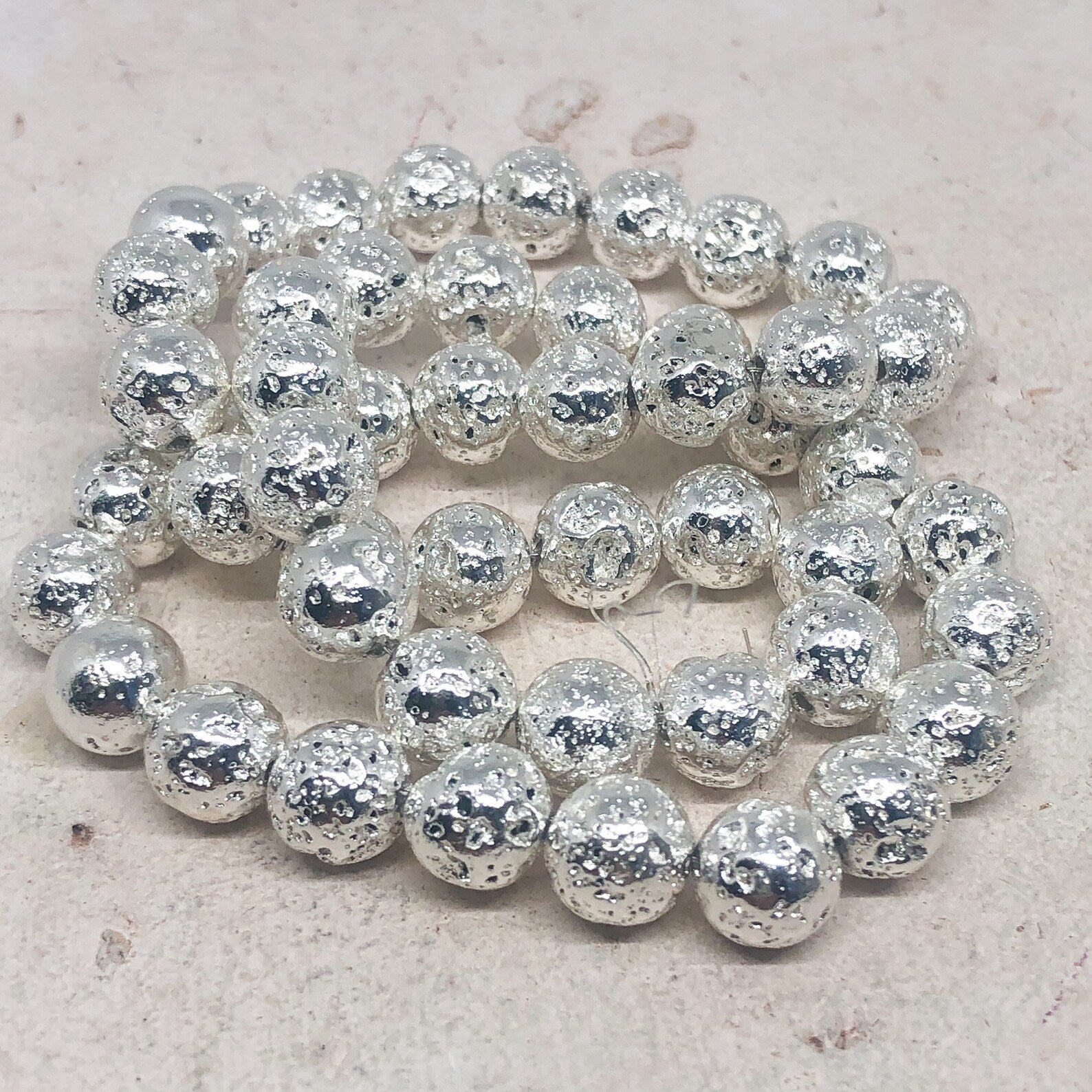 Lava Perlen Naturstein 8mm 45 St. versilbert