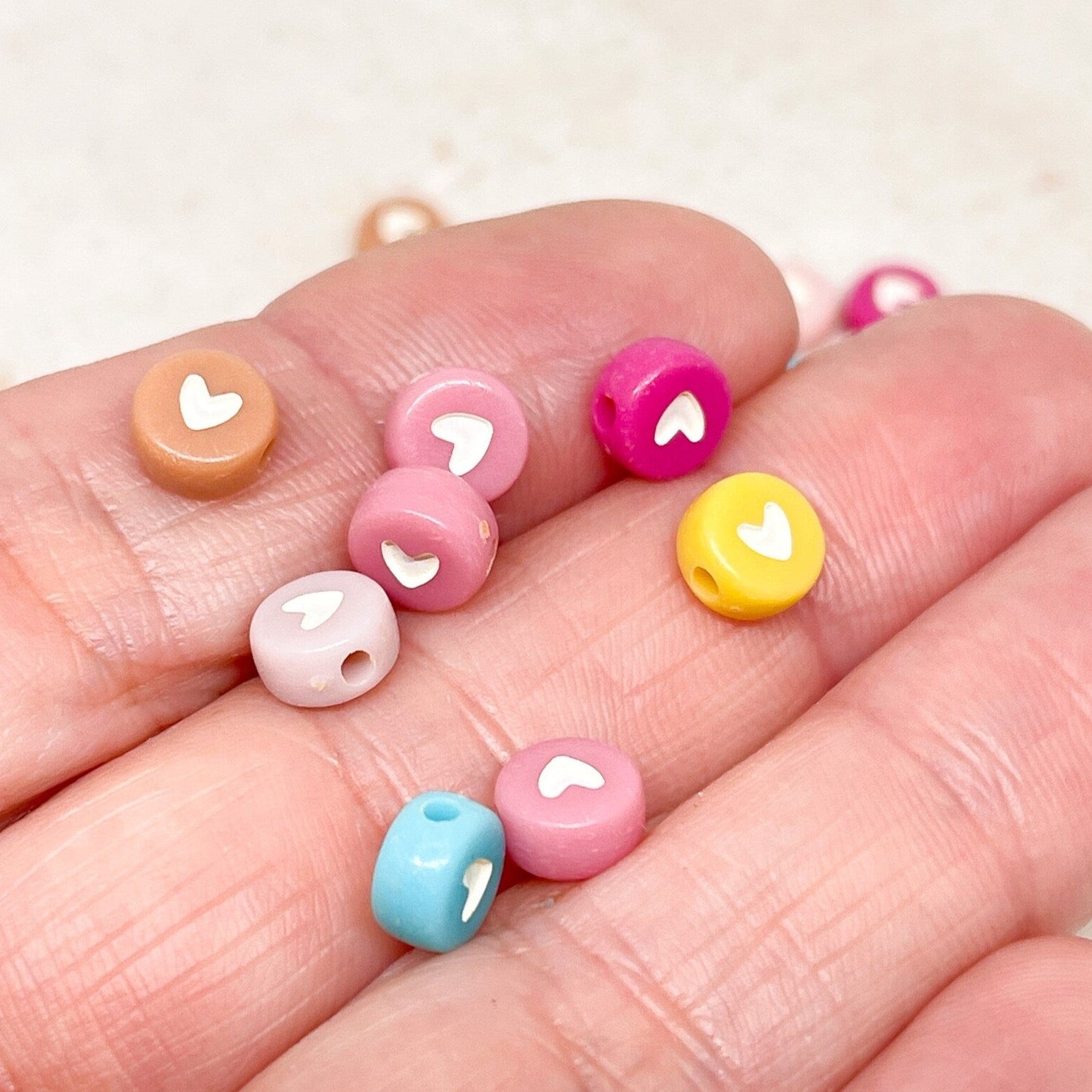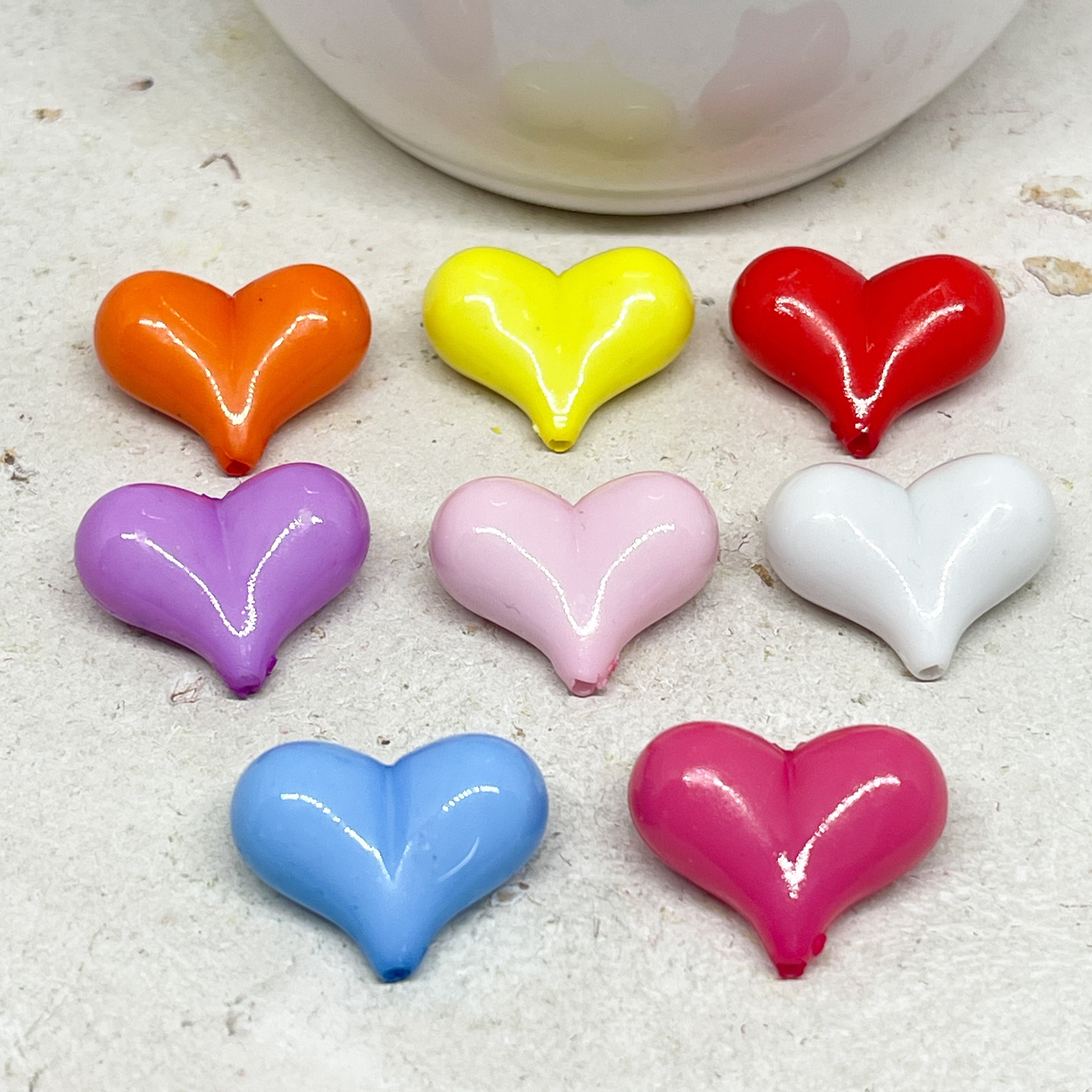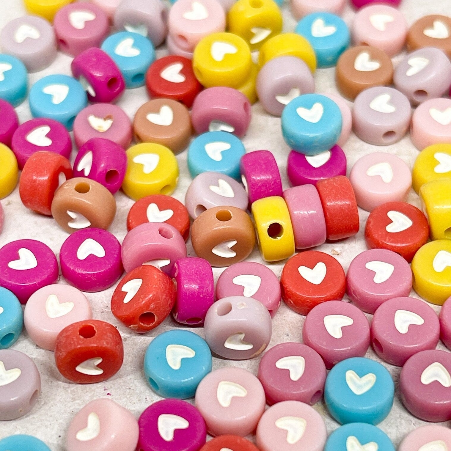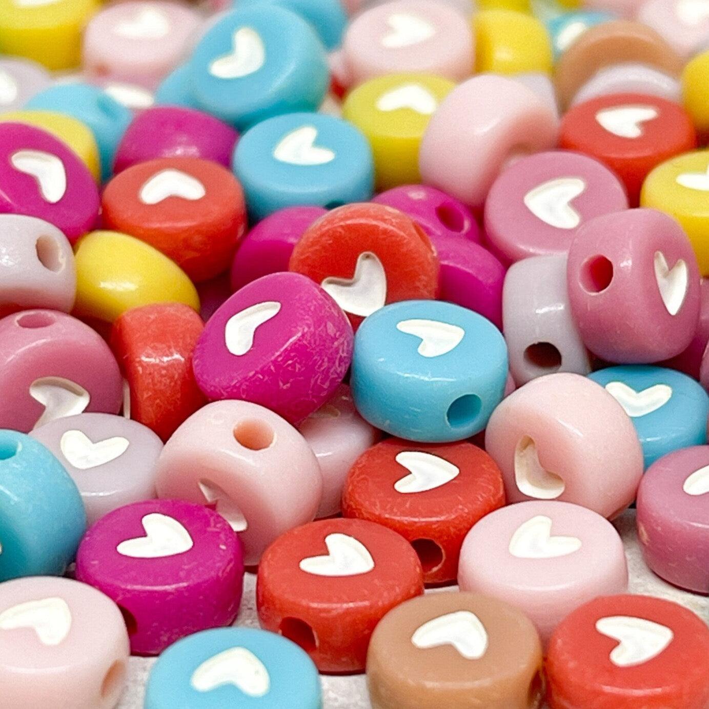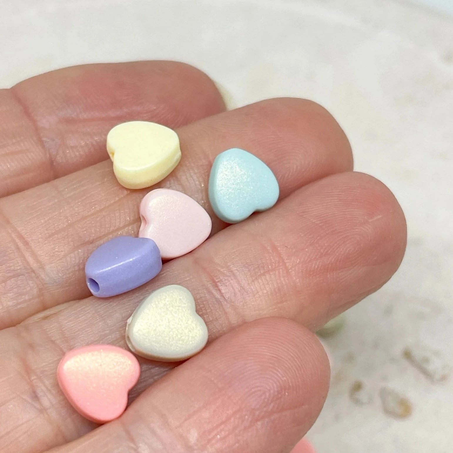 Unsere Herzperlen aus Acryl sind leicht, farbenfroh und angenehm zu tragen – erhältlich in Pastelltönen, knalligen Farben oder transparentem Glitzerlook, meist in Größen zwischen 6–12 mm.