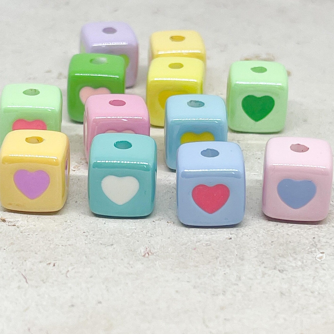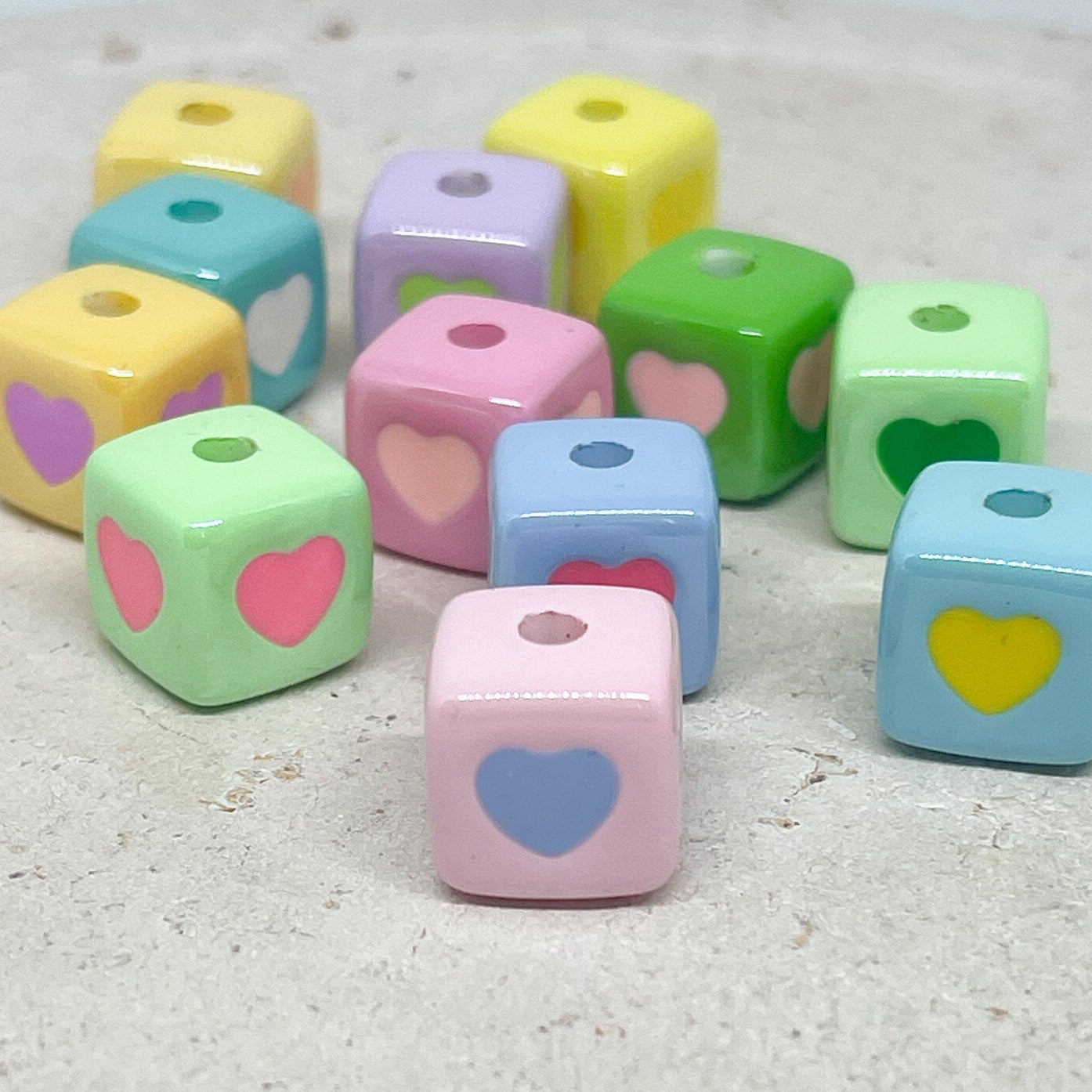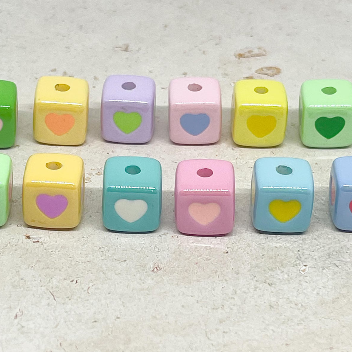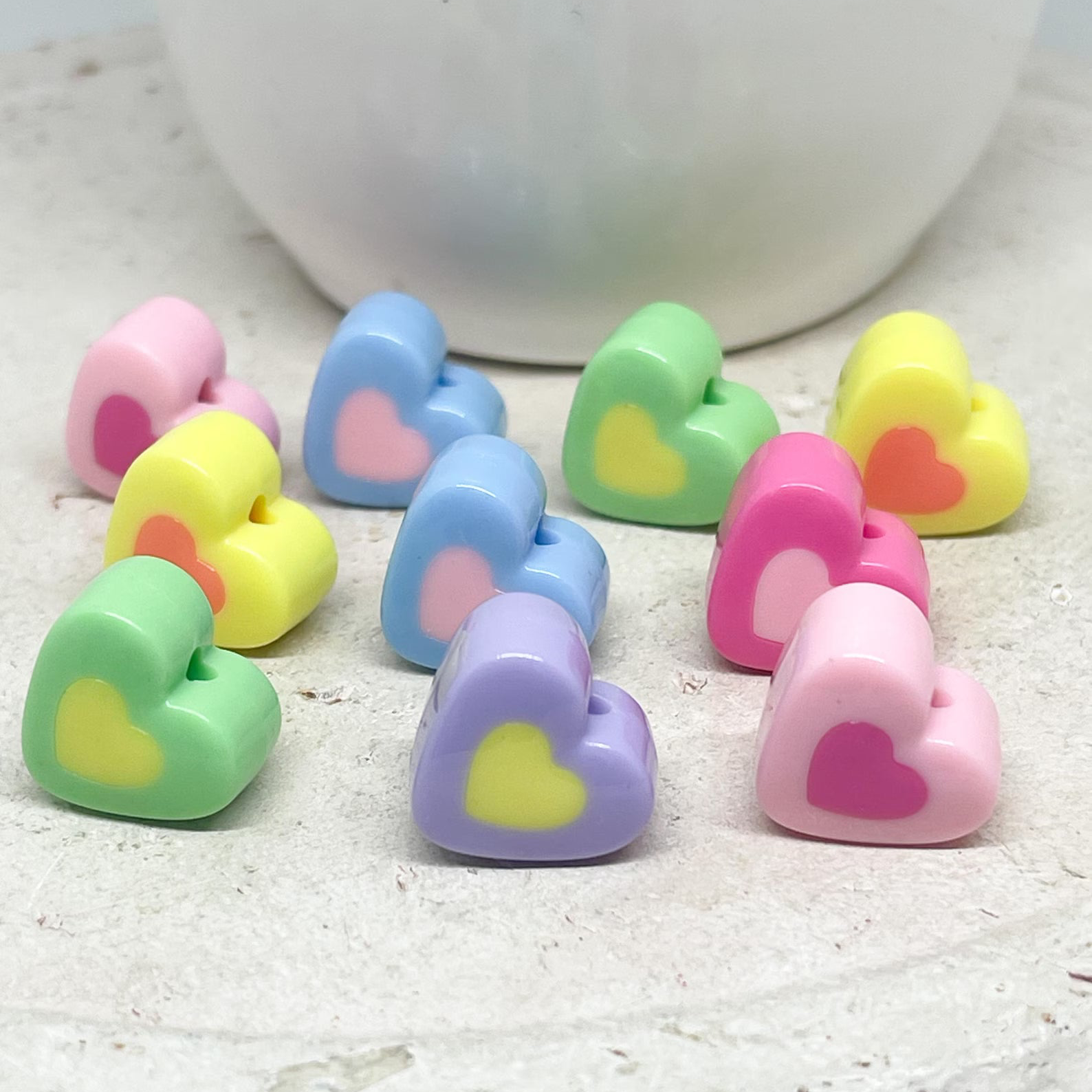 Unsere Herzperlen aus Acryl sind leicht, farbenfroh und angenehm zu tragen – erhältlich in Pastelltönen, knalligen Farben oder transparentem Glitzerlook, meist in Größen zwischen 6–12 mm.