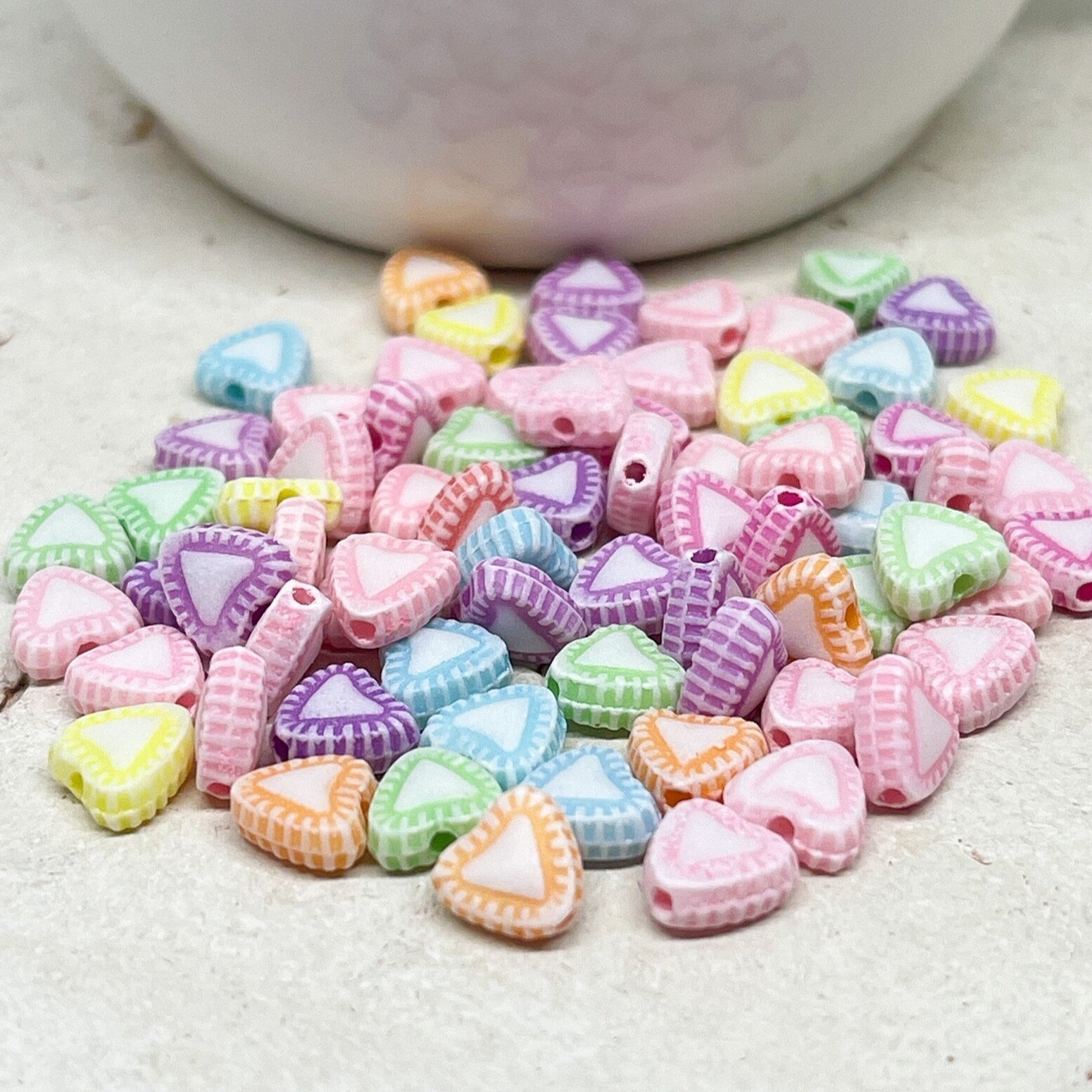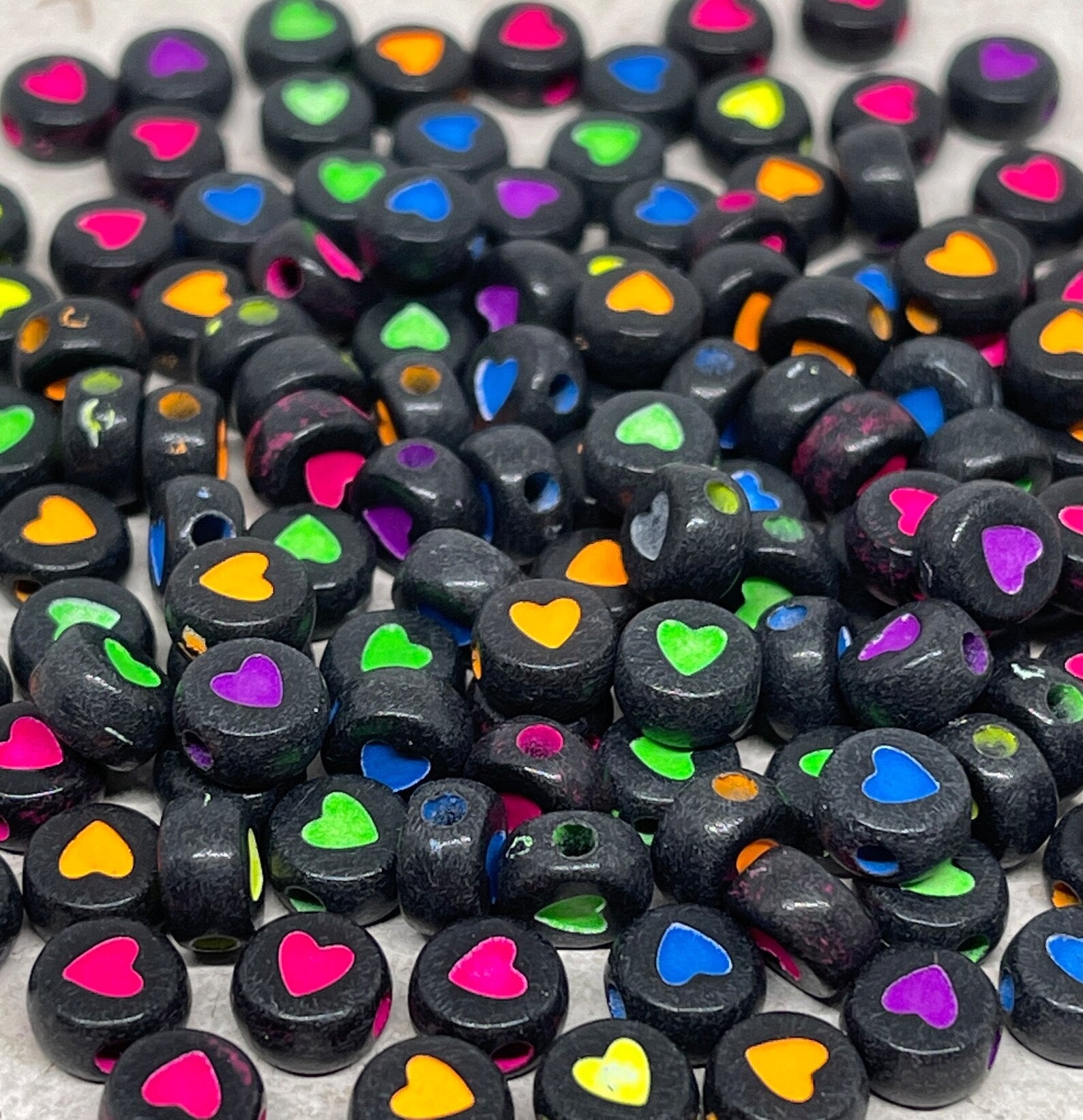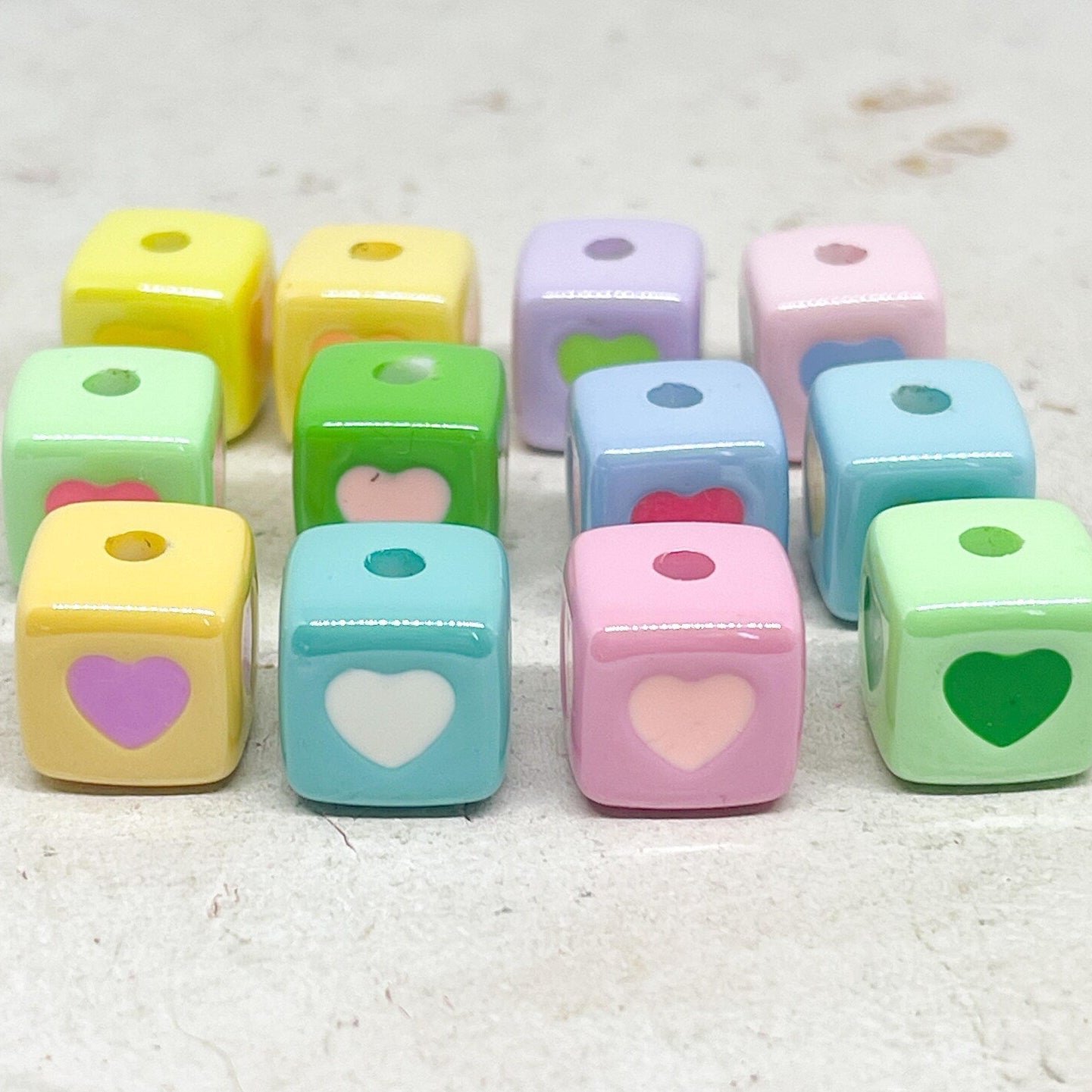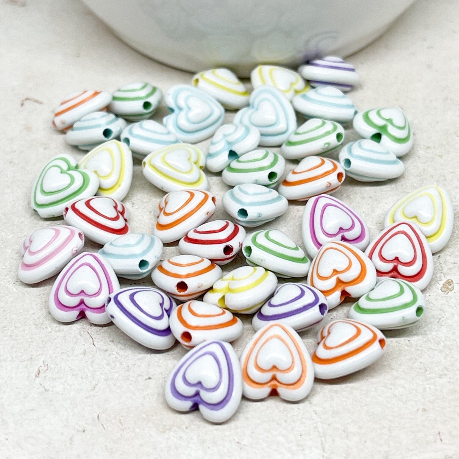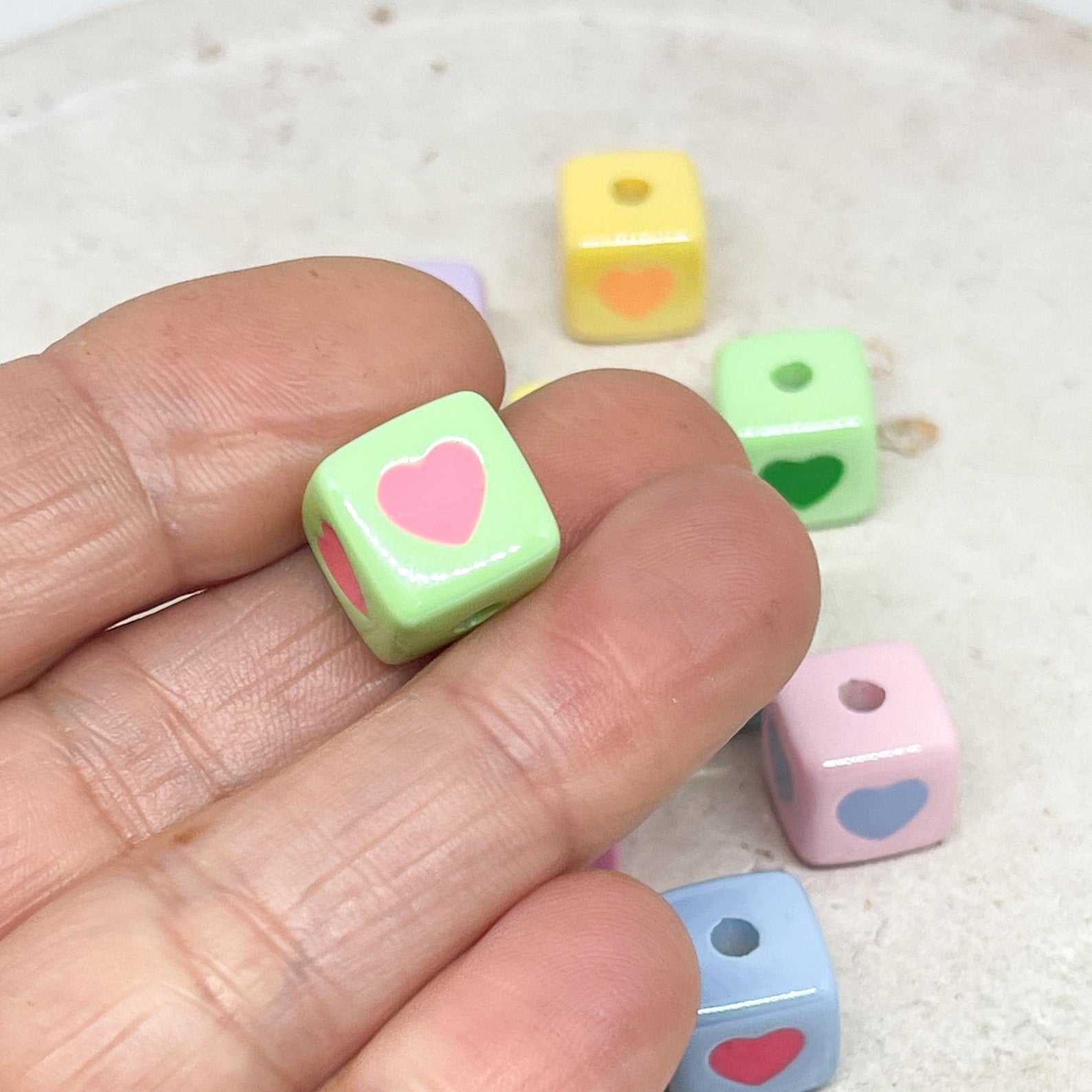 Unsere Herzperlen aus Acryl sind leicht, farbenfroh und angenehm zu tragen – erhältlich in Pastelltönen, knalligen Farben oder transparentem Glitzerlook, meist in Größen zwischen 6–12 mm.
