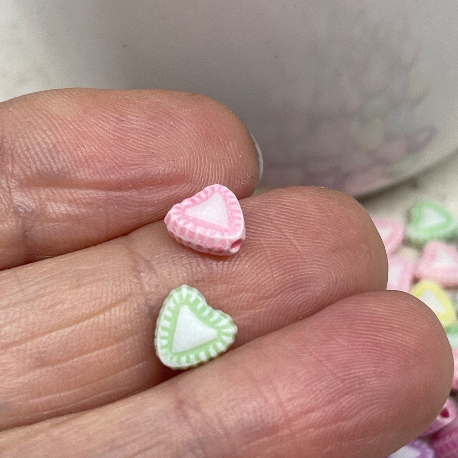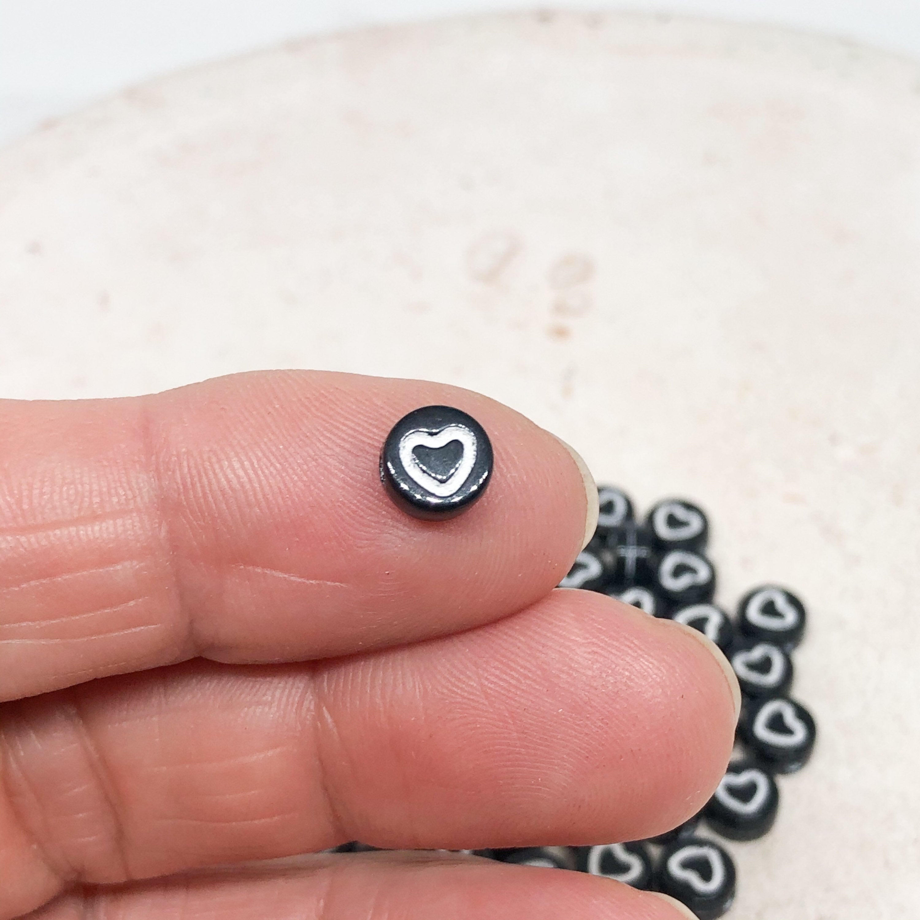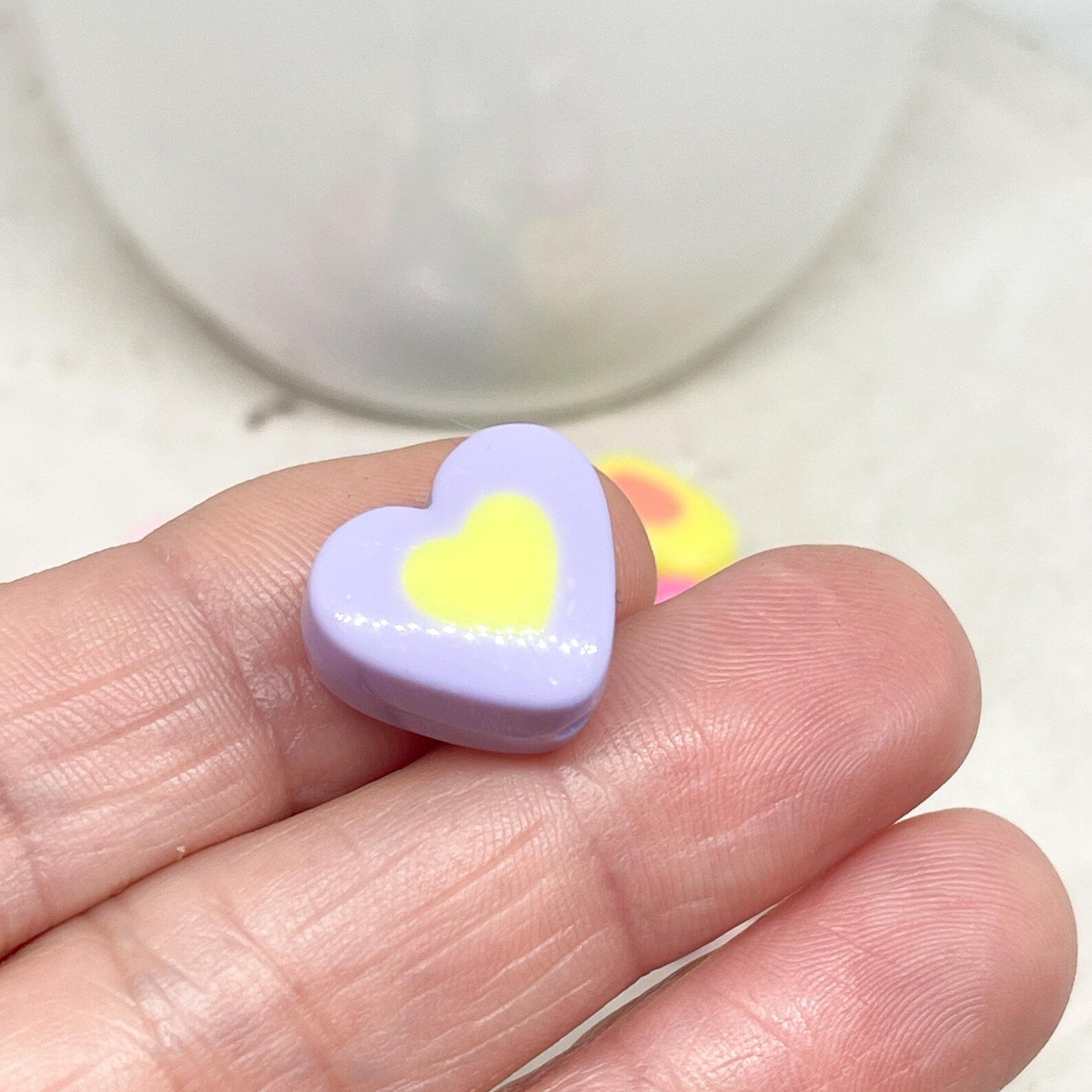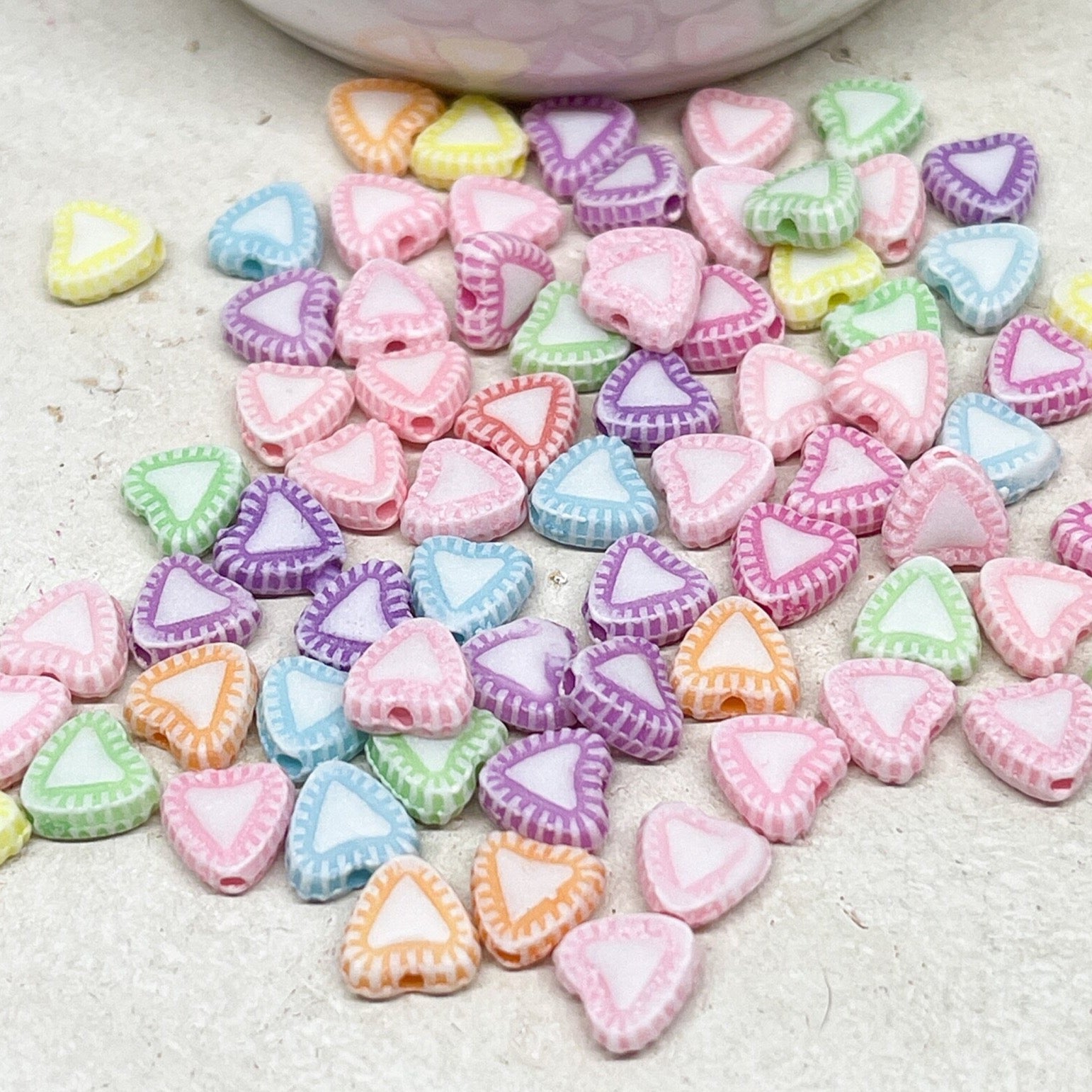 Unsere Herzperlen aus Acryl sind leicht, farbenfroh und angenehm zu tragen – erhältlich in Pastelltönen, knalligen Farben oder transparentem Glitzerlook, meist in Größen zwischen 6–12 mm.