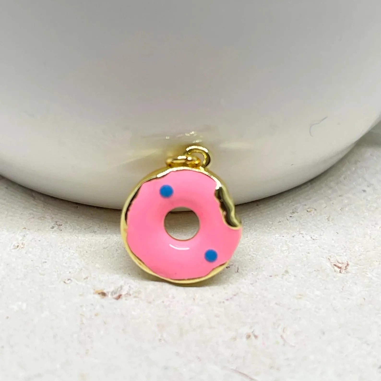 Messing Emaille Anhänger Donut, 14K vergoldet, einseitig gearbeitet.