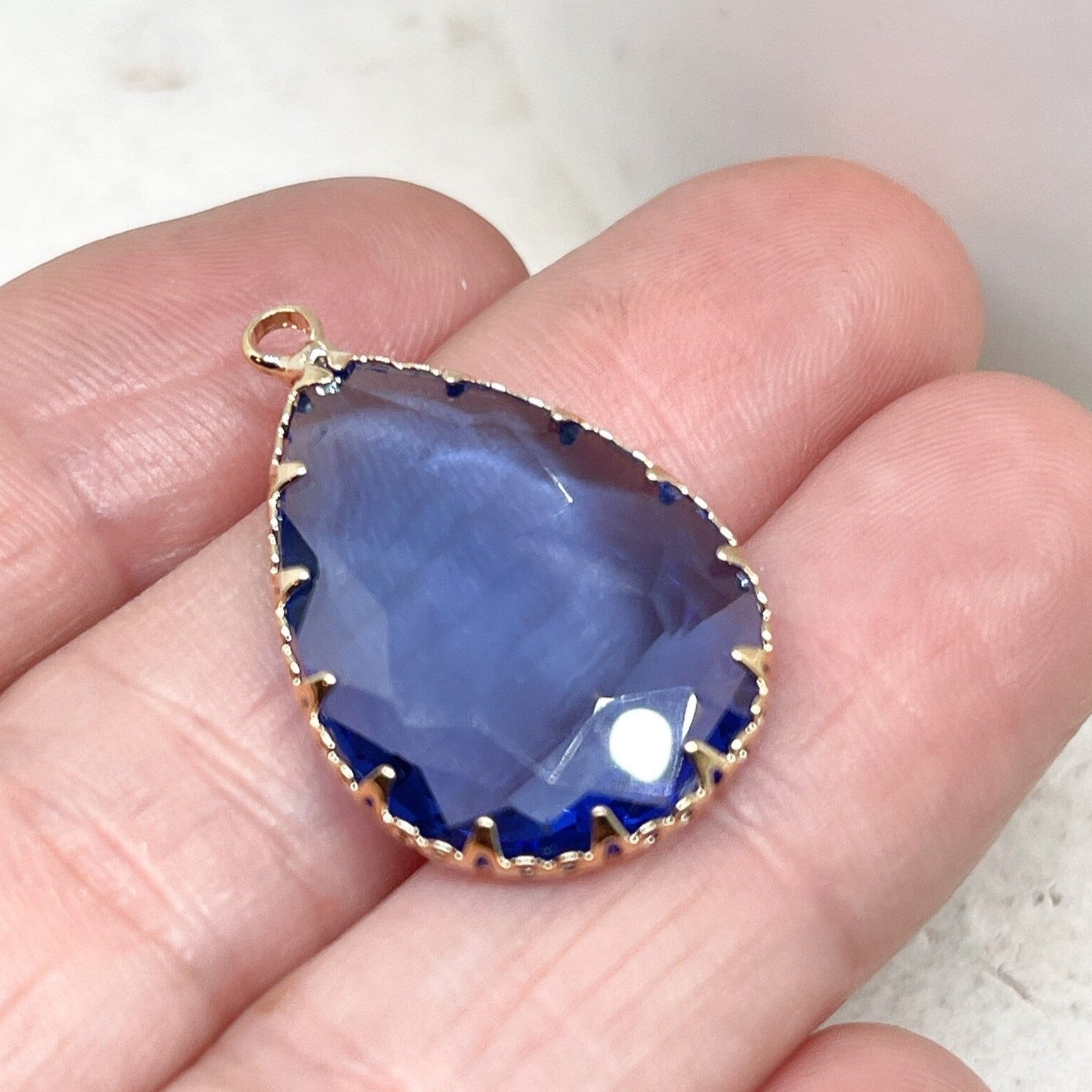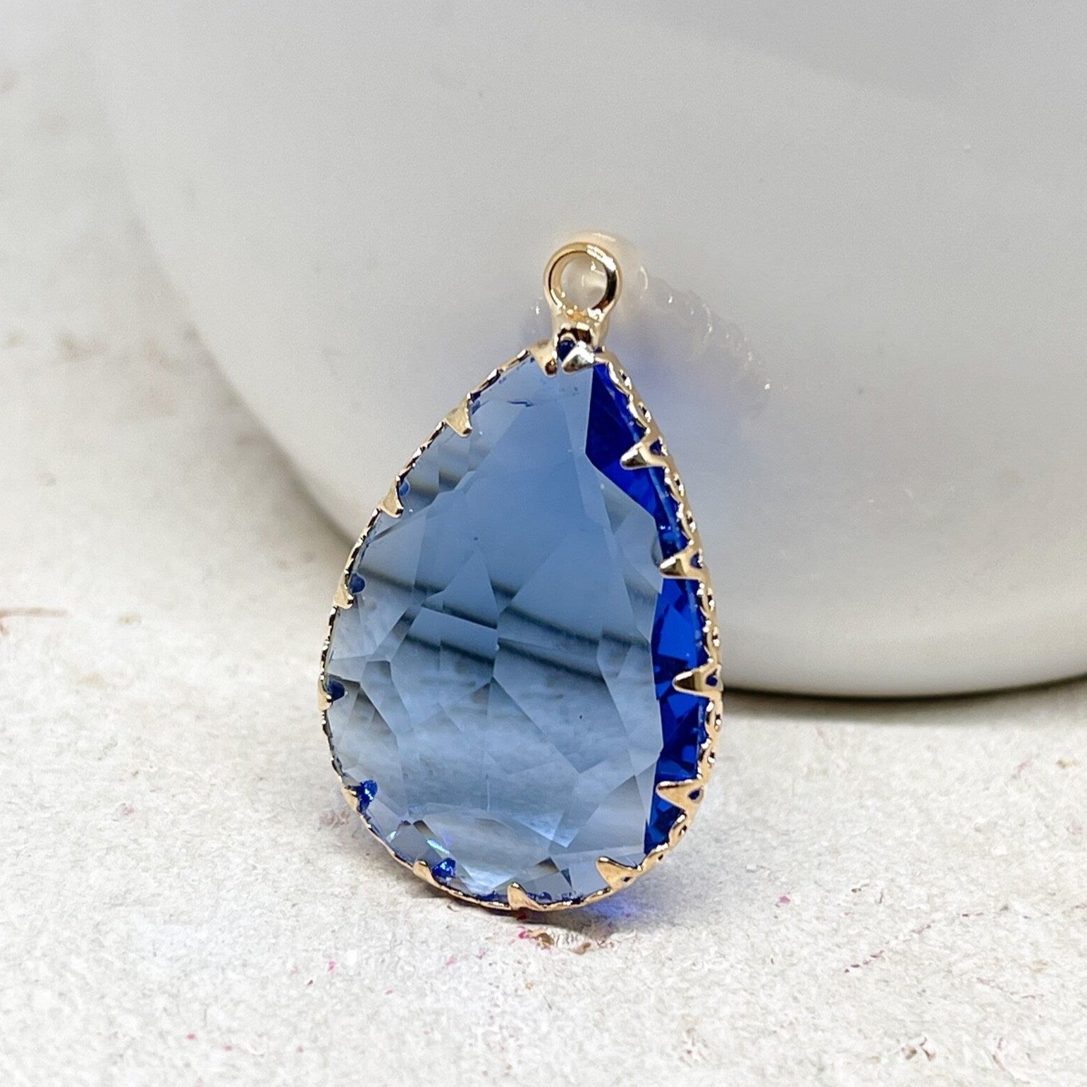 Facettierte Tropfen, blau mit einer Kupfer Fassung