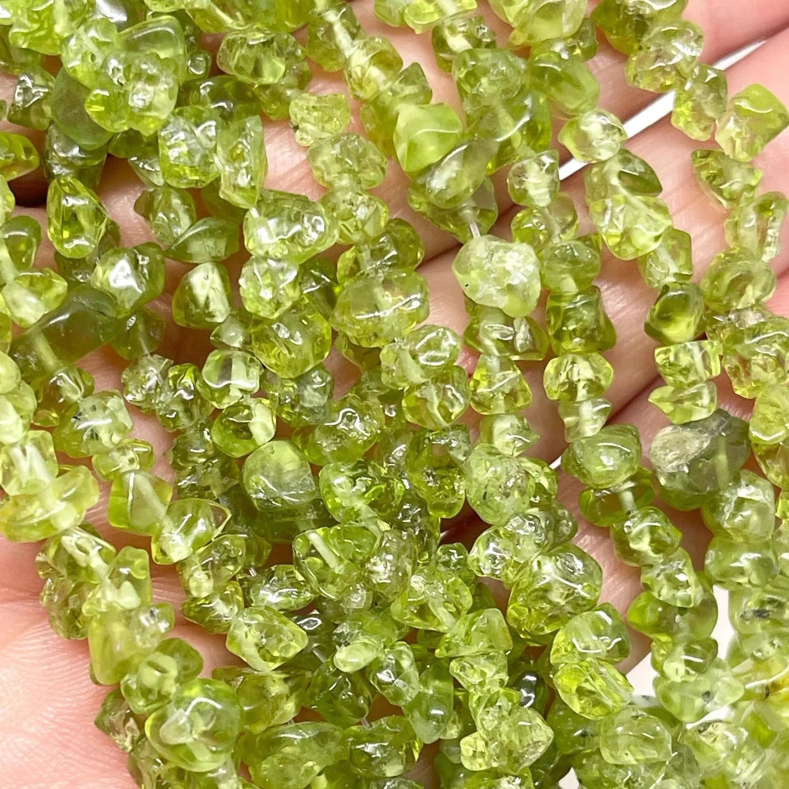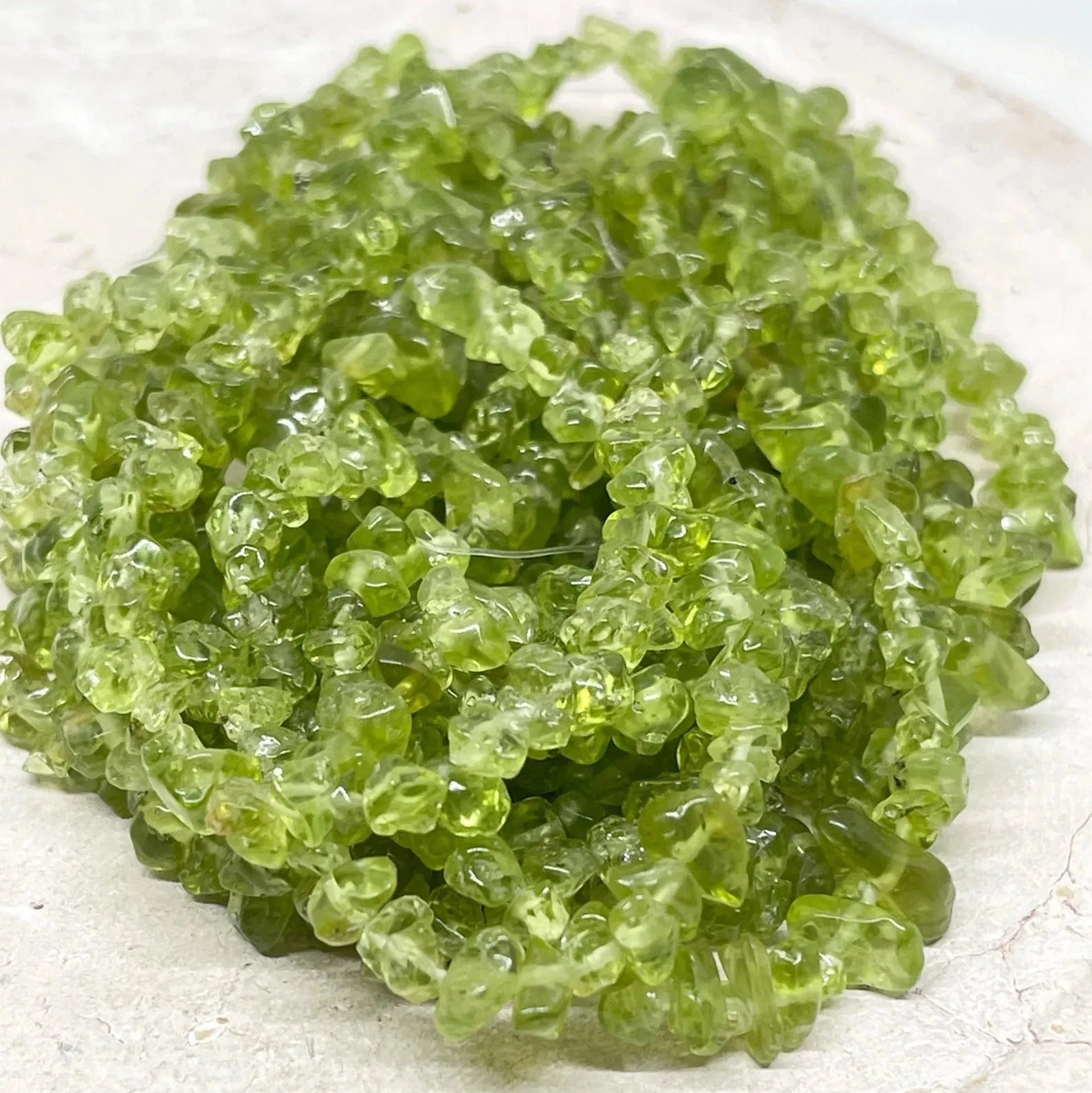 Natürliche Splitterperlen aus Olivinquarz in grüner Farbe für Schmuckherstellung und DIY-Projekte. Ideal für Armbänder, Ketten, Ohrringe und kreative Schmuckdesigns.