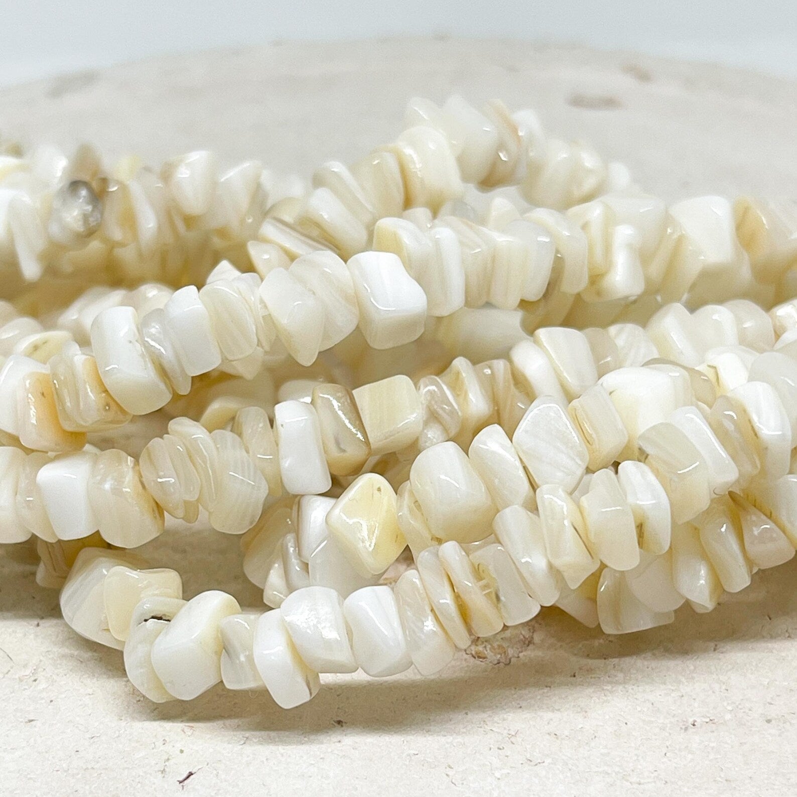 Natürliche Splitterperlen aus Süßwasserperlen in zarter Creme-Farbe für elegante Schmuckdesigns.