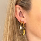 Wasserfeste Edelstahlcreolen mit Cowboy Stiefel als Anhänger, Vakuumbeschihtet und 18K vergoldet.