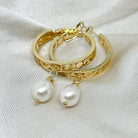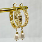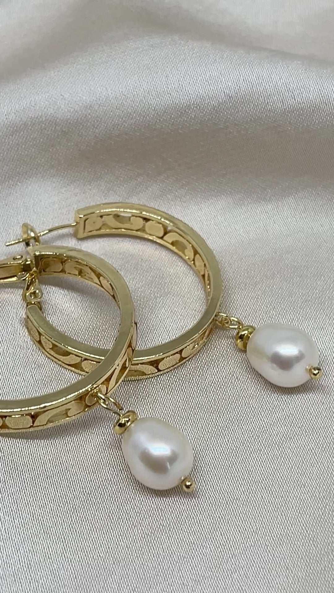Schöne Ohrringe mit Süßwasserperle. Creolen sind aus vergoldetem Edelstahl.