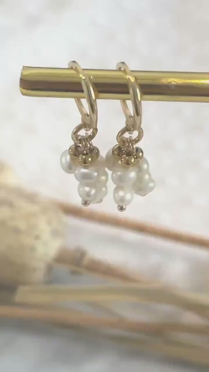 Schöne Ohrringe mit kl. Süßwasserperlen. Creolen sind aus vergoldetem Edelstahl.