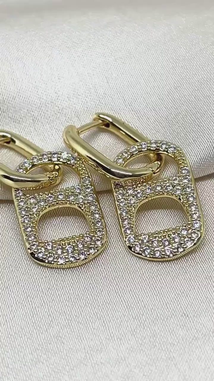 Creolen Ohrringe aus Messing, 18K vergoldet mit Zirkonia Steinen.