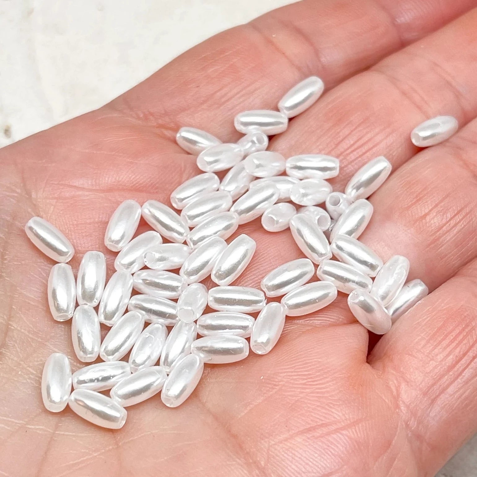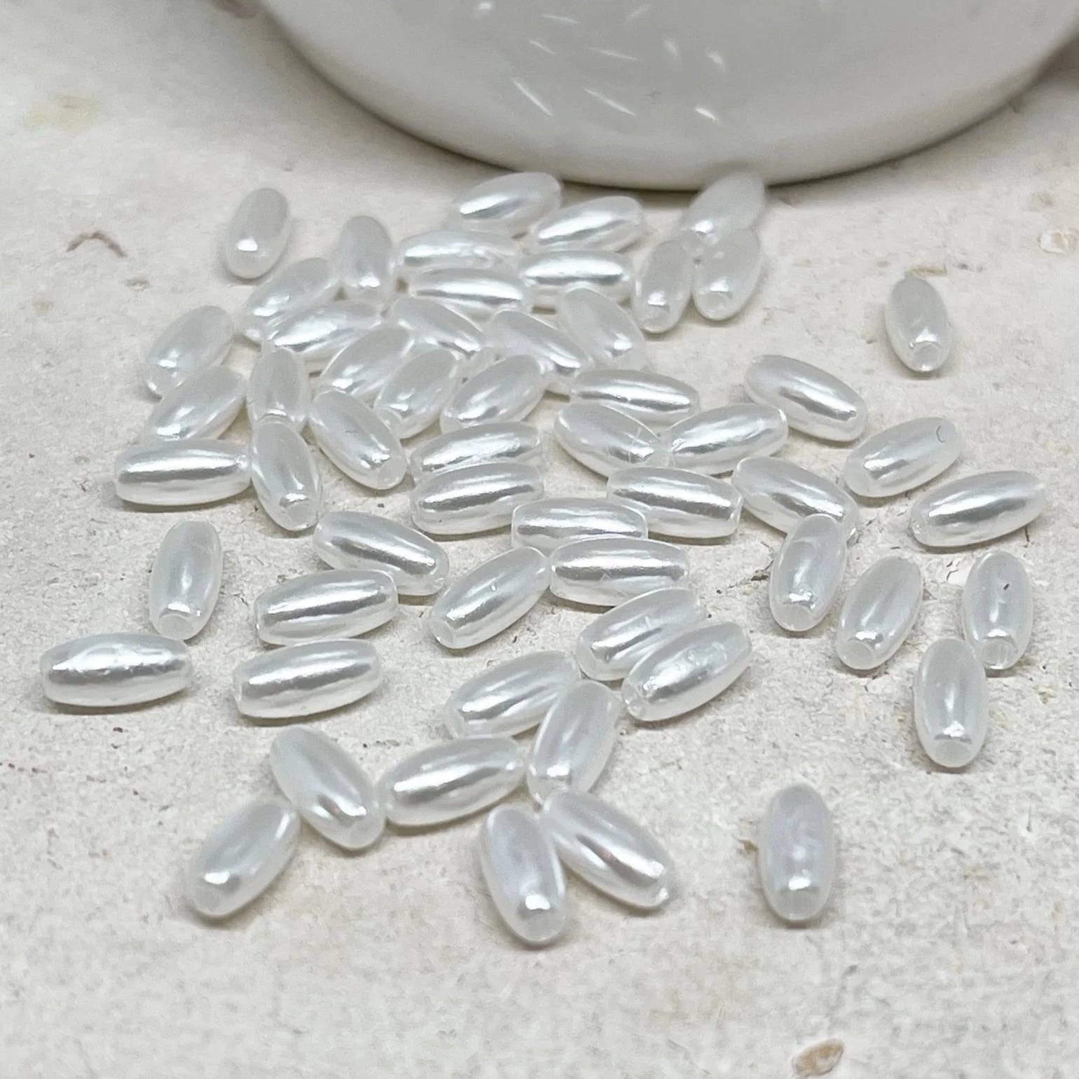 100 St. Acryl Perlen Oval 8mm x 4mm - Weiß
