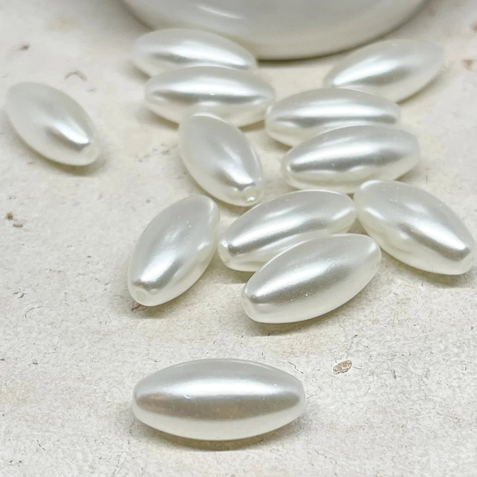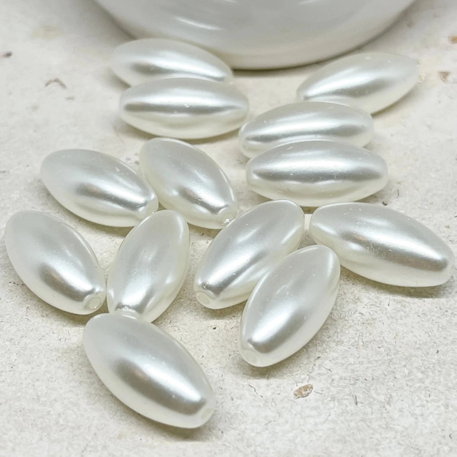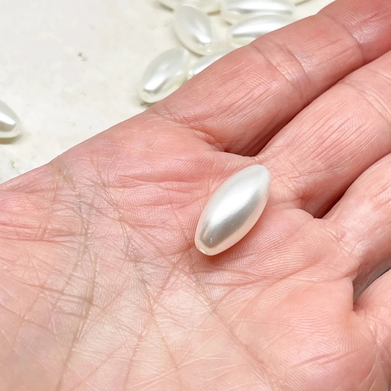 25 St. Acryl Perlen Oval 21mm x 10mm - Weiß Creme