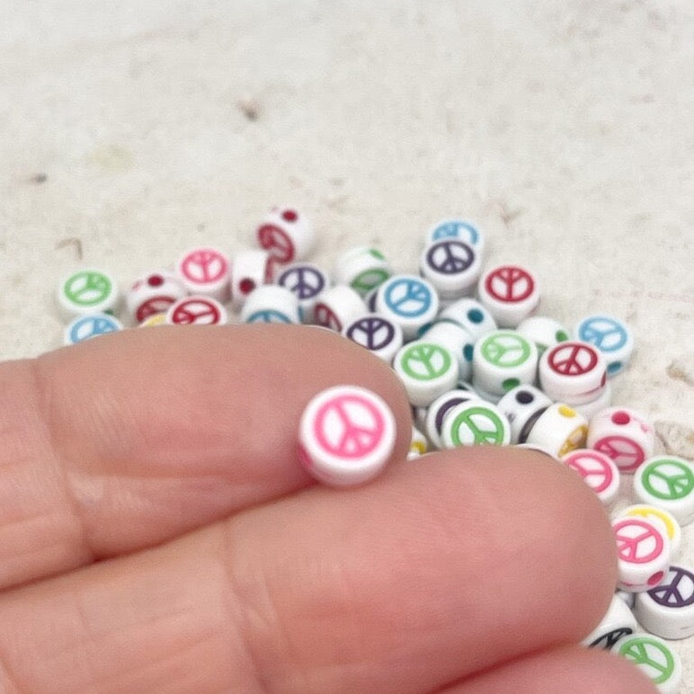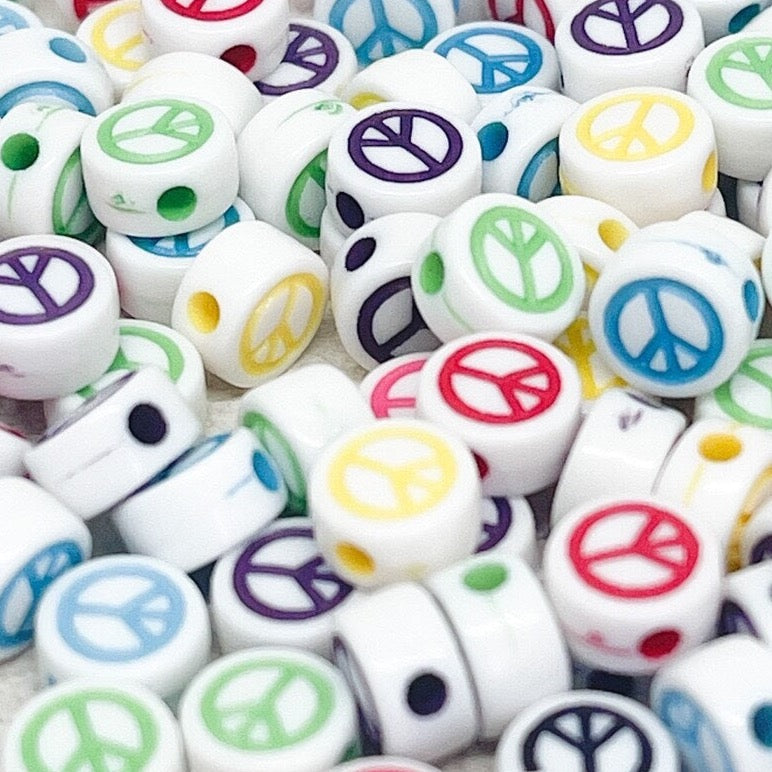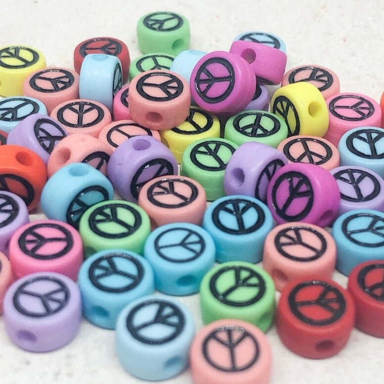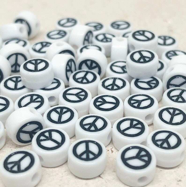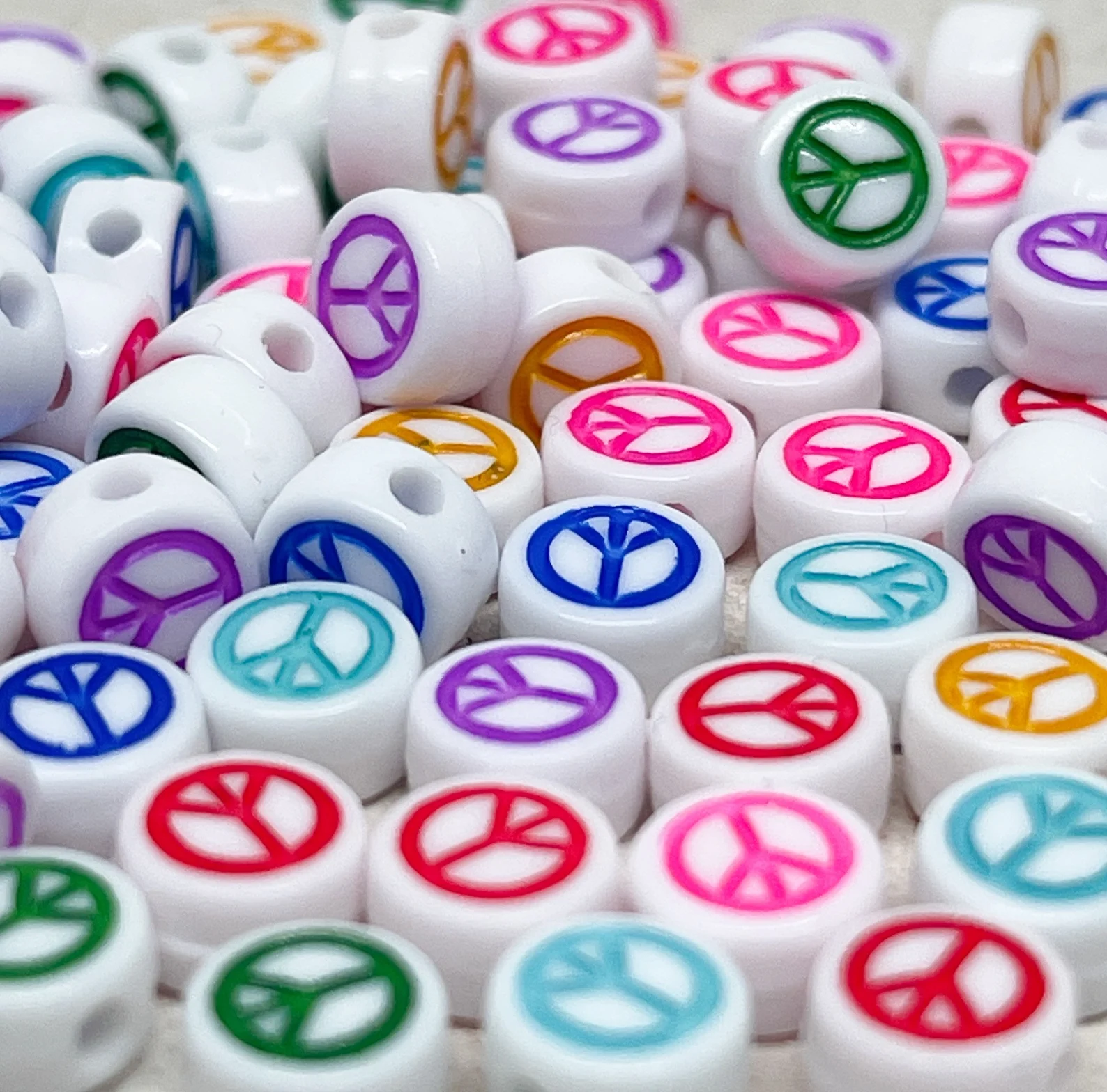 Acrylperlen mit Peace-Zeichen setzen nicht nur optische Akzente, sondern auch ein Statement. Ob als Symbol für Frieden, Freiheit oder Freundschaft – diese Perlen sind ideal für individuelle Armbänder, Festival-Schmuck, Schlüsselanhänger oder kreative DIY-Geschenke.