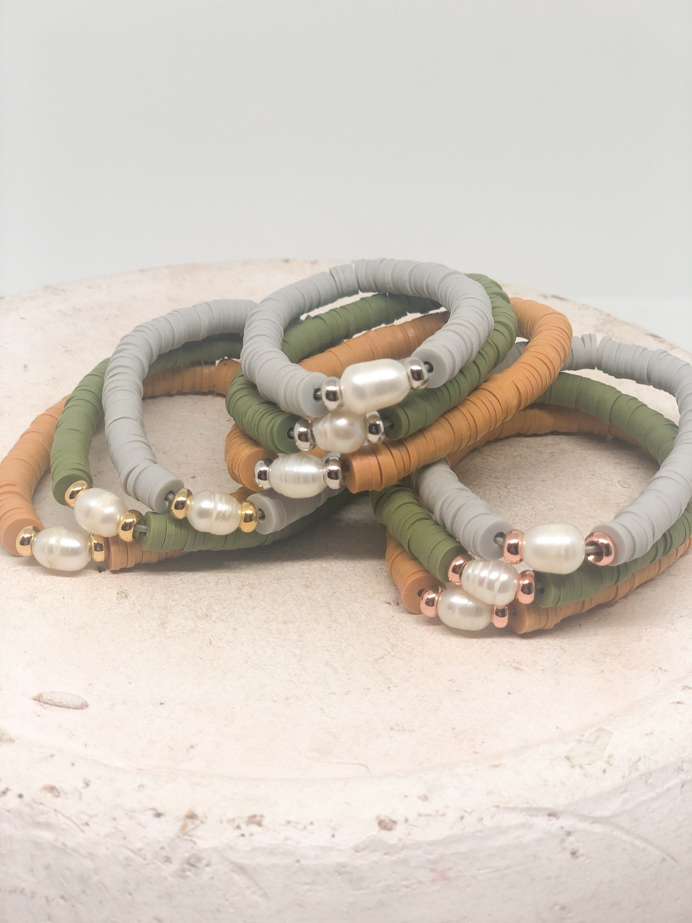 Armband aus Heishi Perlen, Süsswasserperle und versilberte Messingperlen