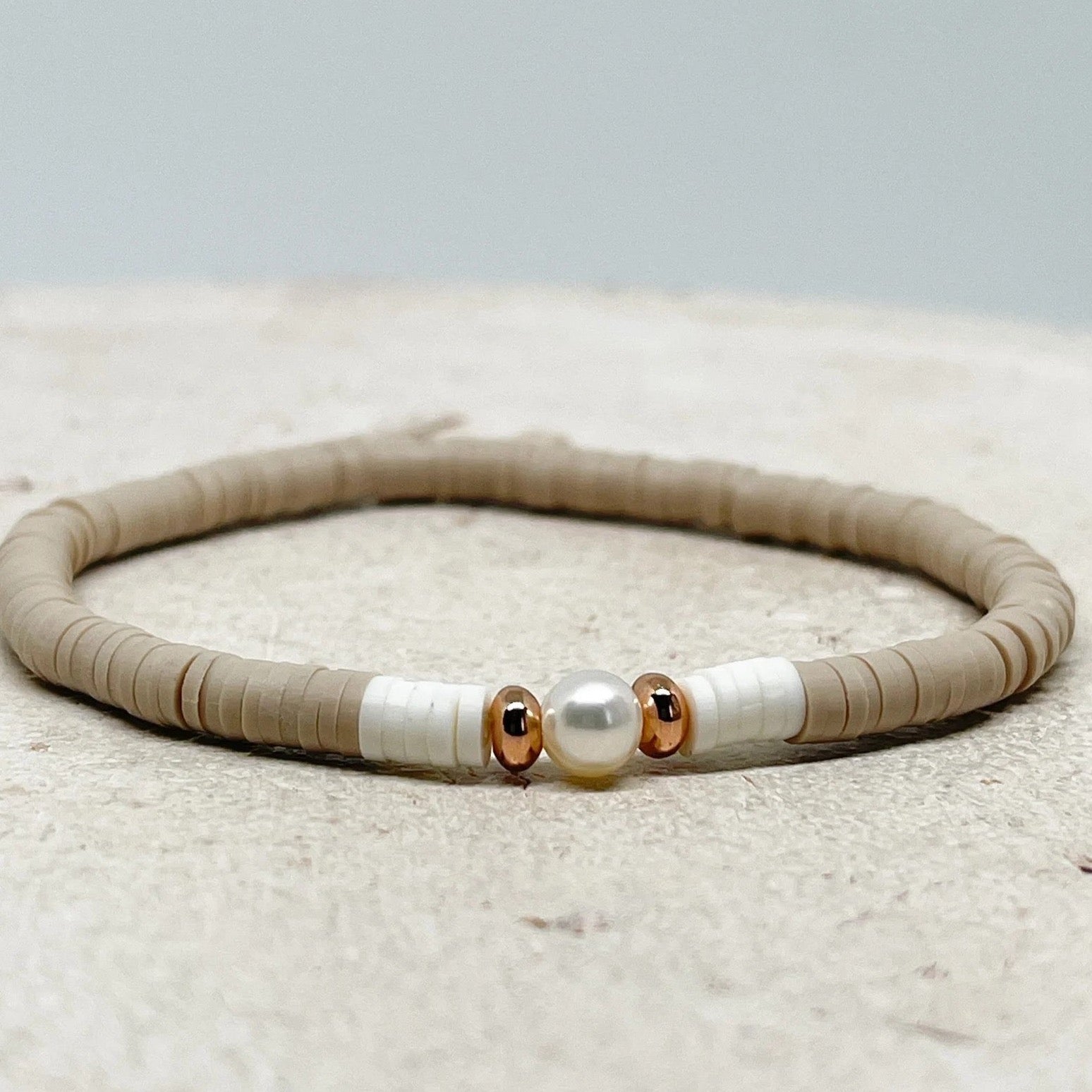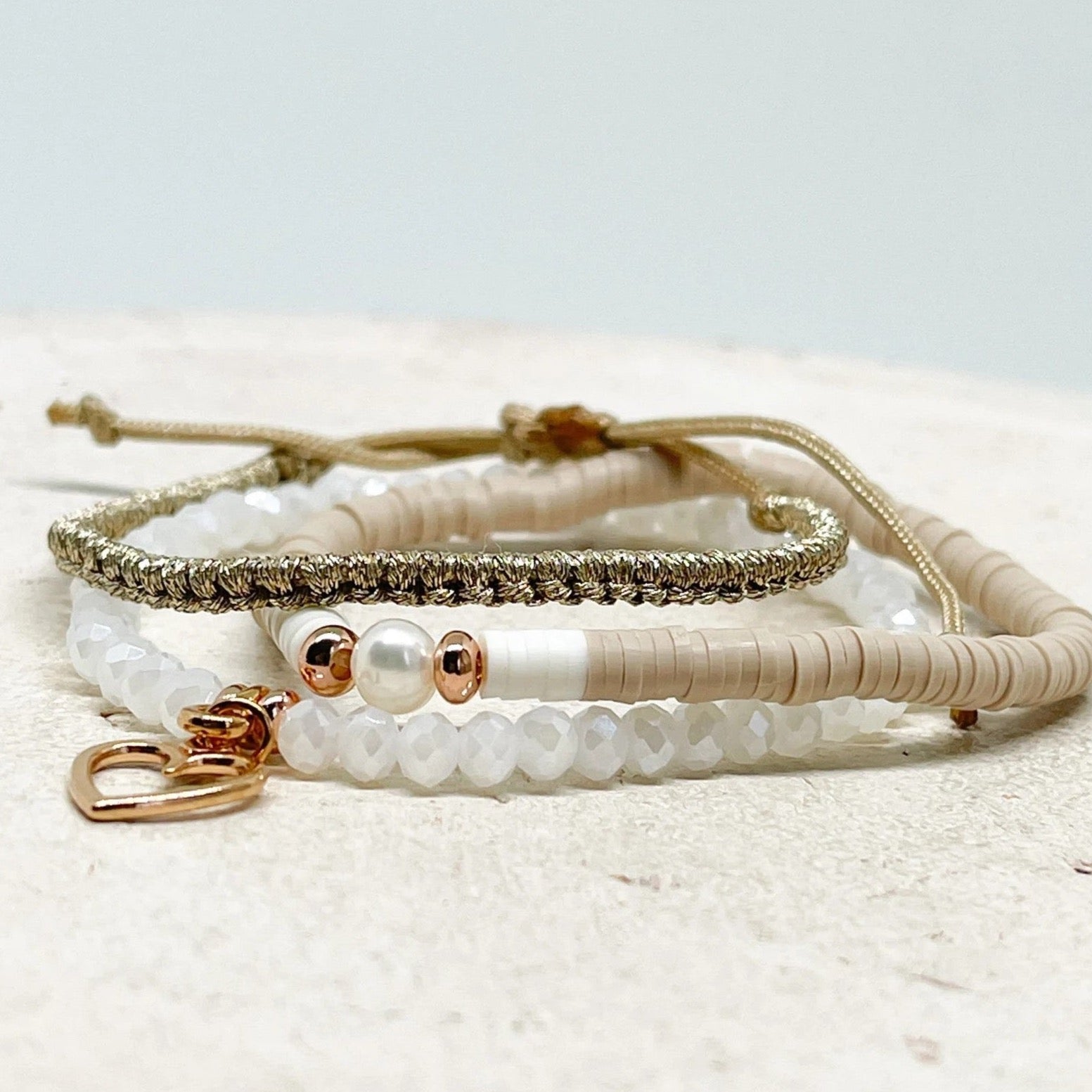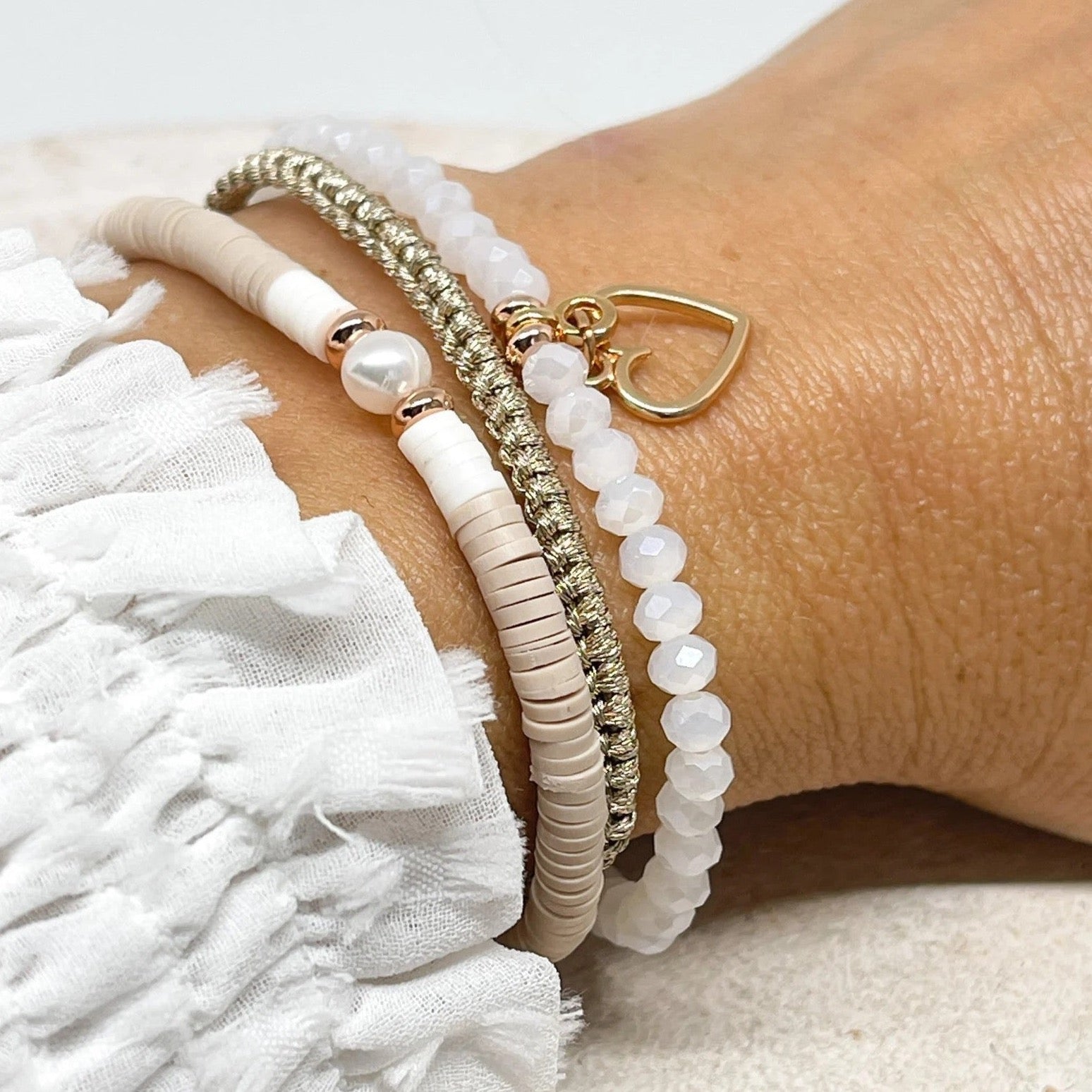 Drei Armbänder mit Heishi Perlen, Kristallperlen und Macramearmband