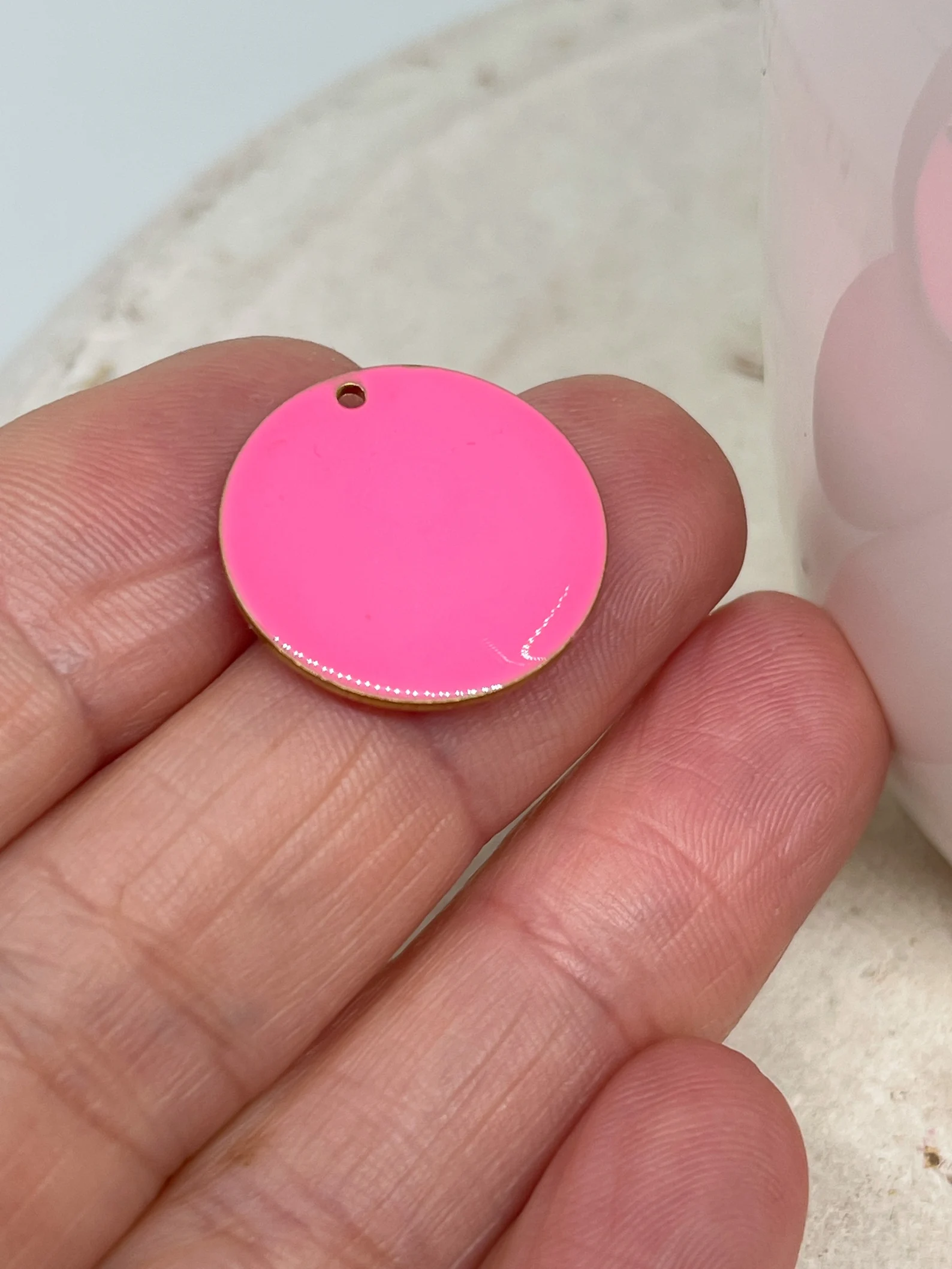 2 St. Emaille Anhänger Emaille Plättchen - Neonpink