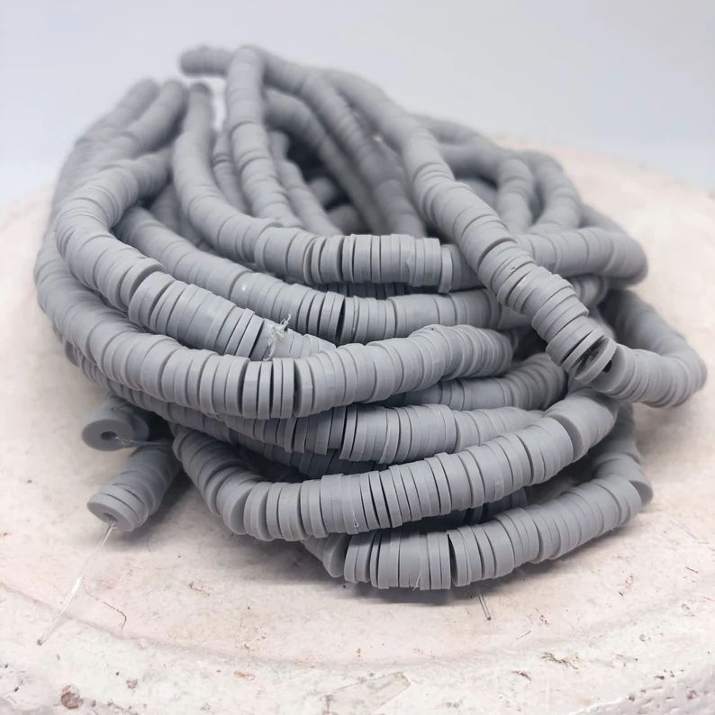 1 Strang Heishi Perlen Polymer Clay Perlen 6mm Grau