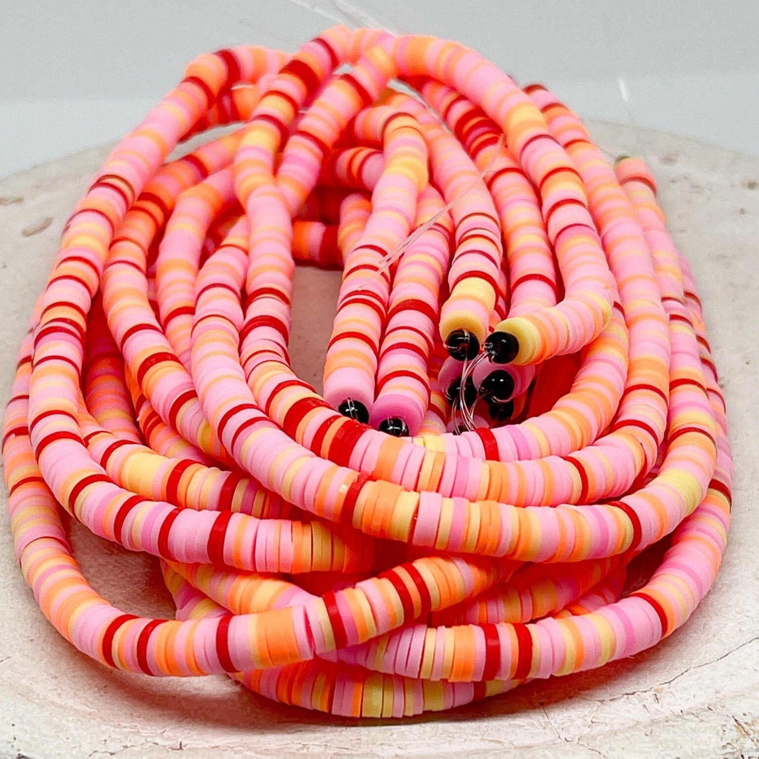 1 Strang Heishi Perlen Polymer Clay Perlen 6mm Orange/Rosa/Bunt