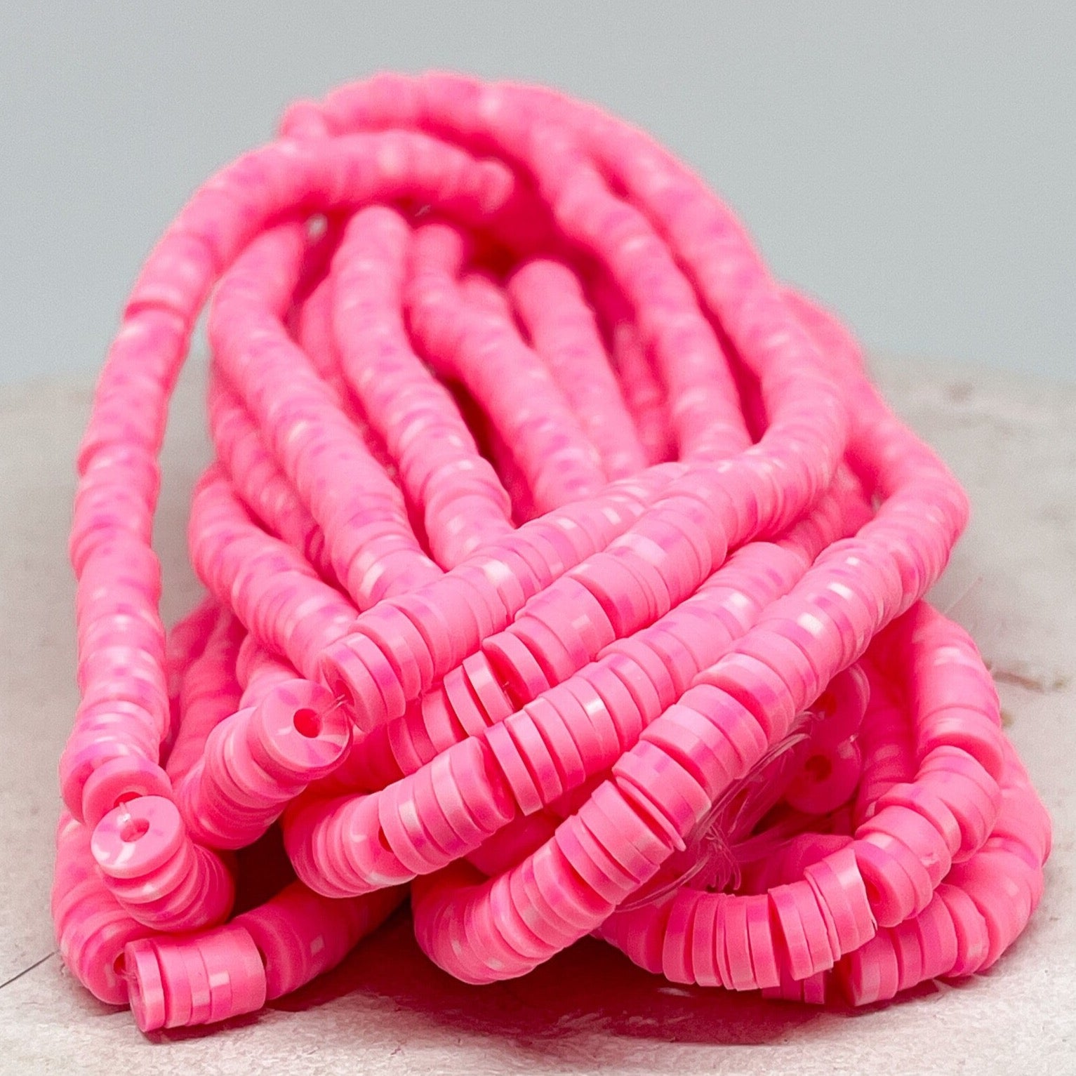 1 Strang Heishi Perlen Polymer Clay Perlen 6mm Pink Weiß