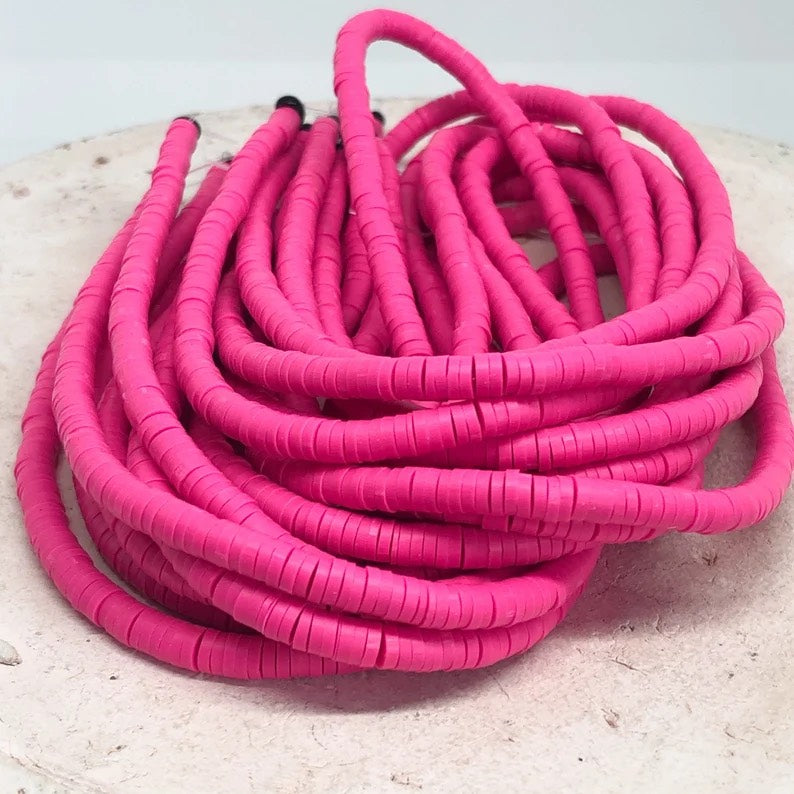 1 Strang Heishi Perlen, Polymer Clay Perlen Scheiben 4mm - Pink