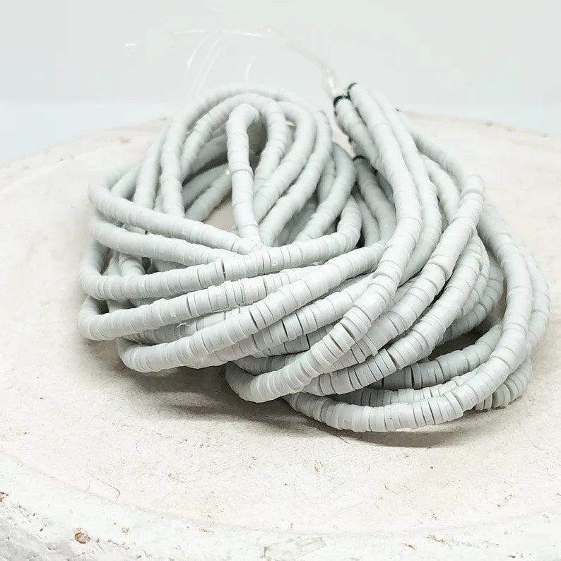 1 Strang Heishi Perlen, Polymer Clay Perlen Scheiben 4mm - Hellgrau