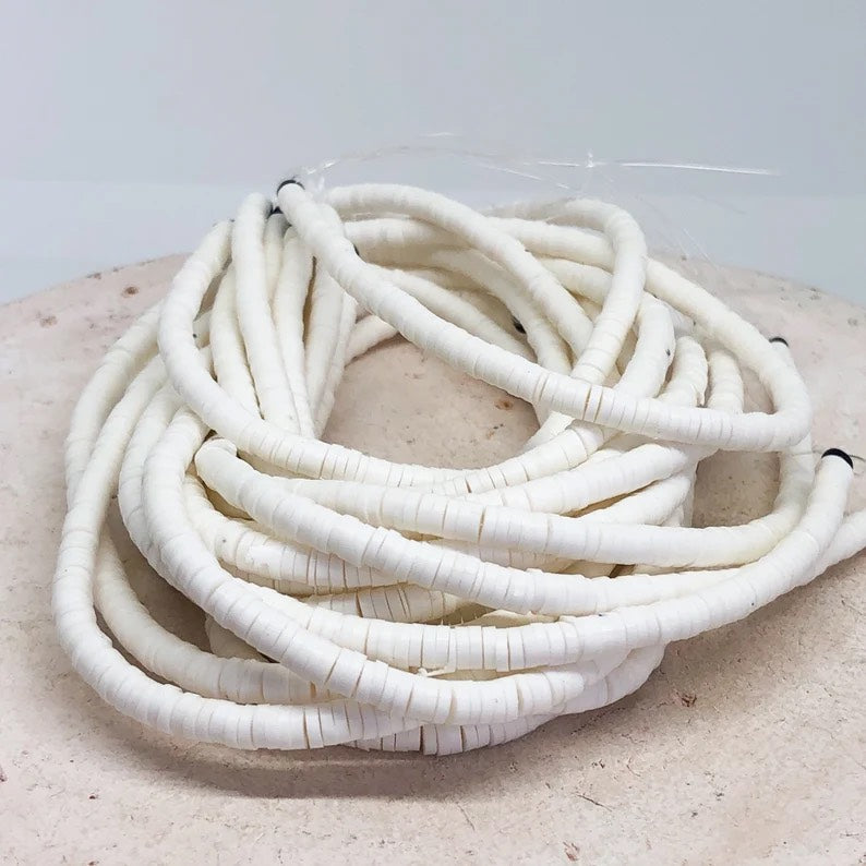 1 Strang Heishi Perlen Polymer Clay Perlen Scheiben 4mm - Weiß