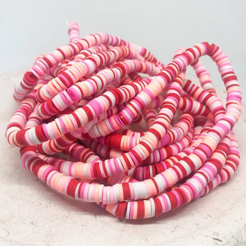 1 Strang Heishi Perlen, Polymer Clay Perlen Scheiben 6mm - Rot Bunt