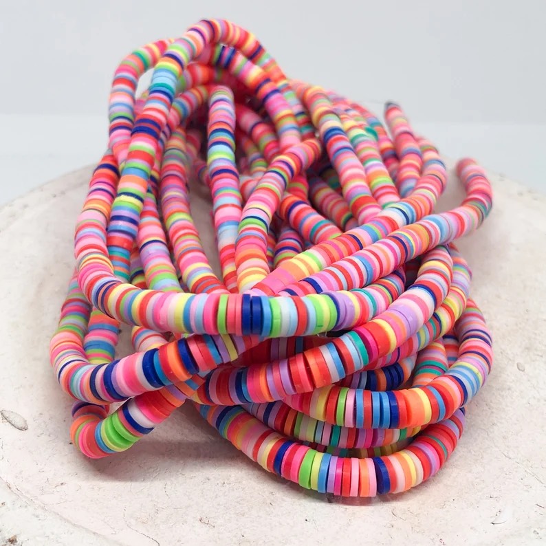 1 Strang Heishi Perlen, Polymer Clay Perlen Scheiben 6mm - Bunt
