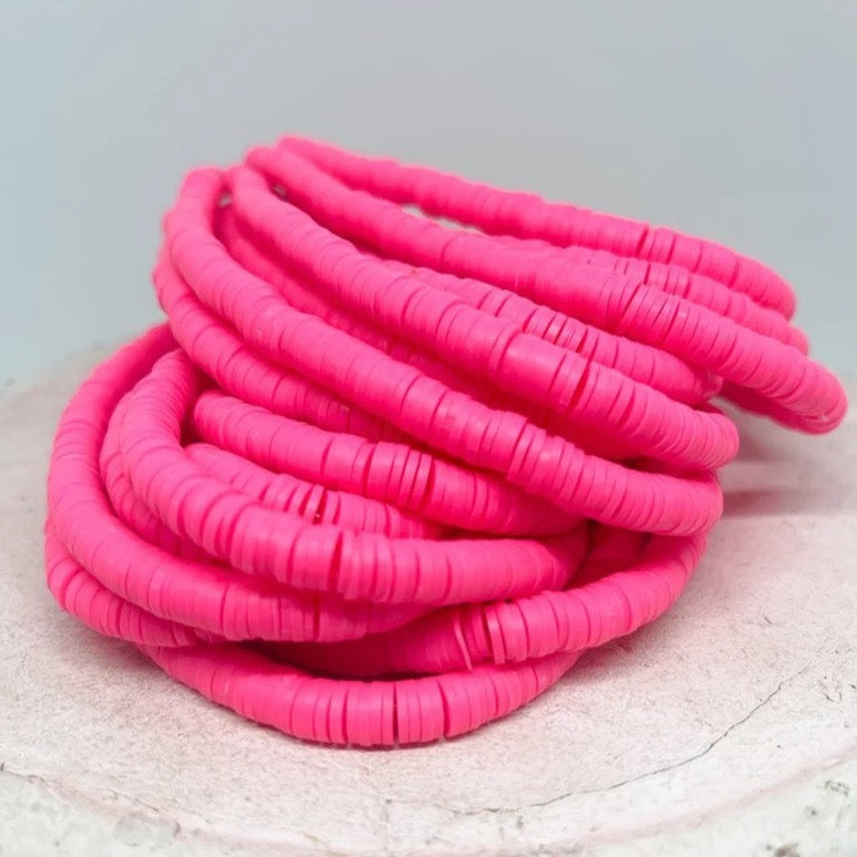 1 Strang Heishi Perlen, Polymer Clay Perlen Scheiben 6mm - Neonpink