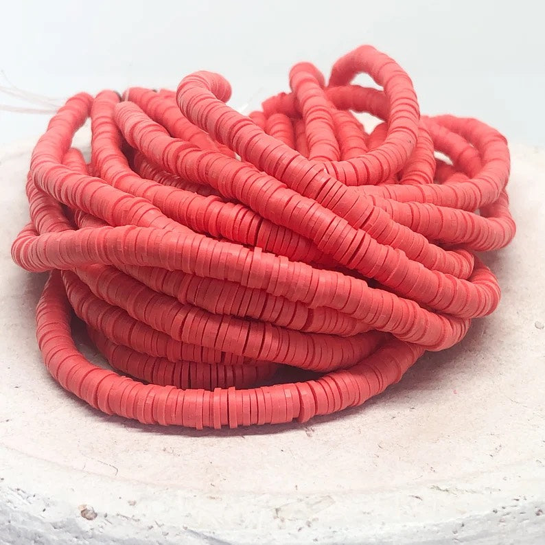 1 Strang Heishi Perlen, Polymer Clay Perlen Scheiben 6mm - Orangerosa