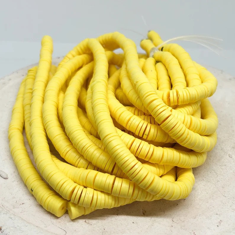 1 Strang Heishi Perlen, Polymer Clay Perlen Scheiben 6mm - Gelb