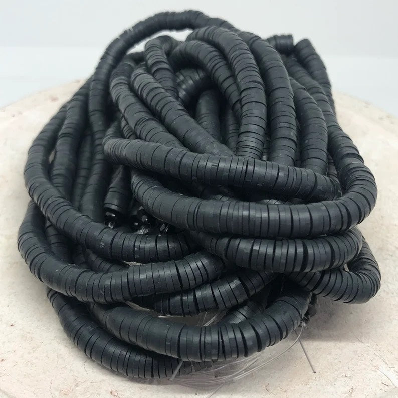 1 Strang Heishi Perlen, Polymer Clay Perlen Scheiben 6mm - Schwarz