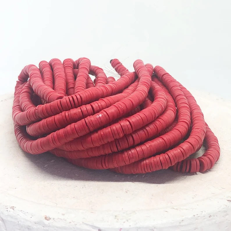 1 Strang Heishi Perlen, Polymer Clay Perlen Scheiben 6mm - Dunkel Rot