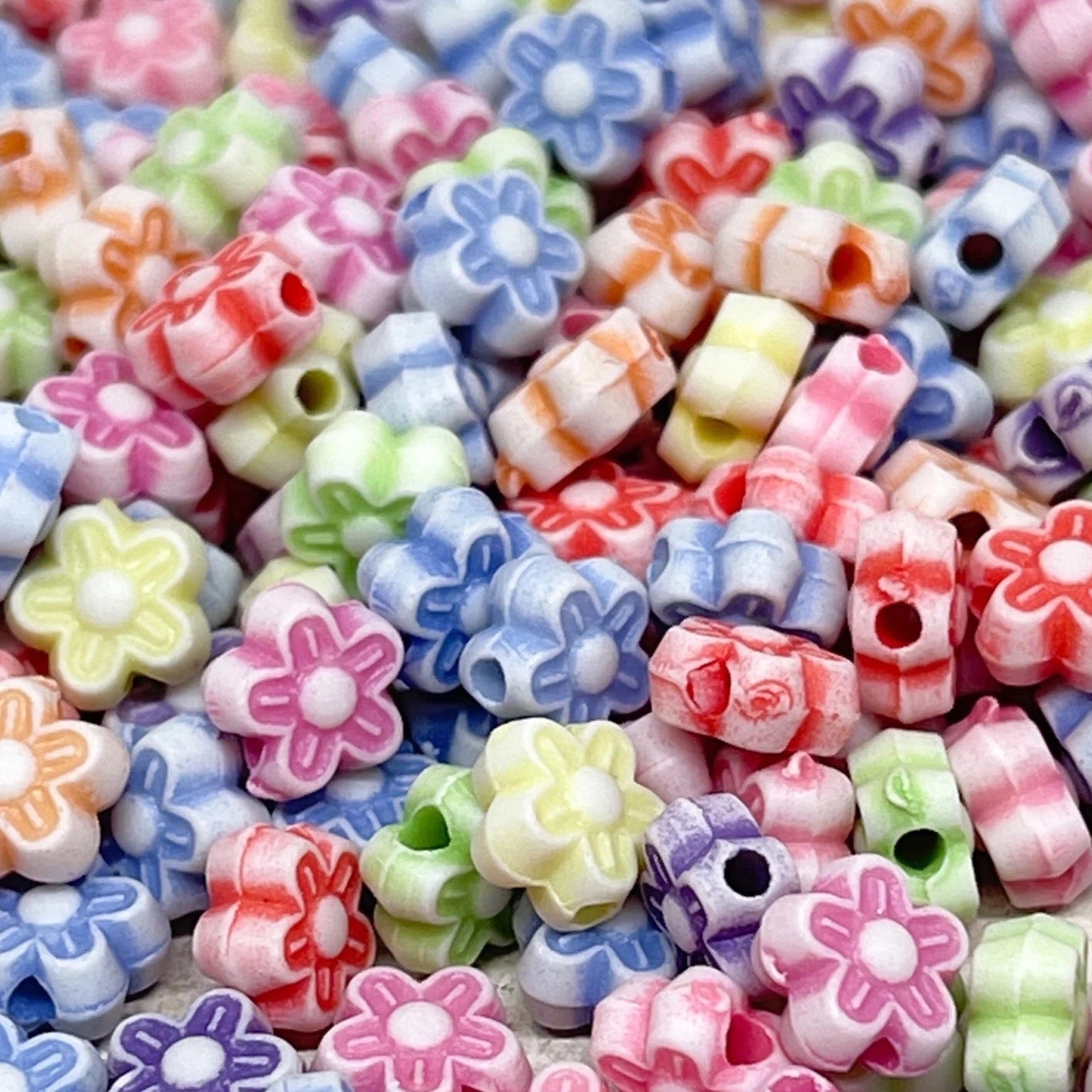 100 St. Acryl Blümchen, Blumen Perlen bunt gemischt