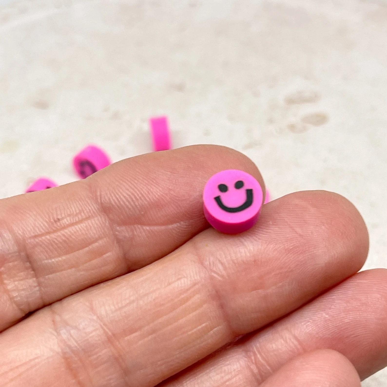 Polymer Clay Perlen Gesicht Lächeln 10mm Pink