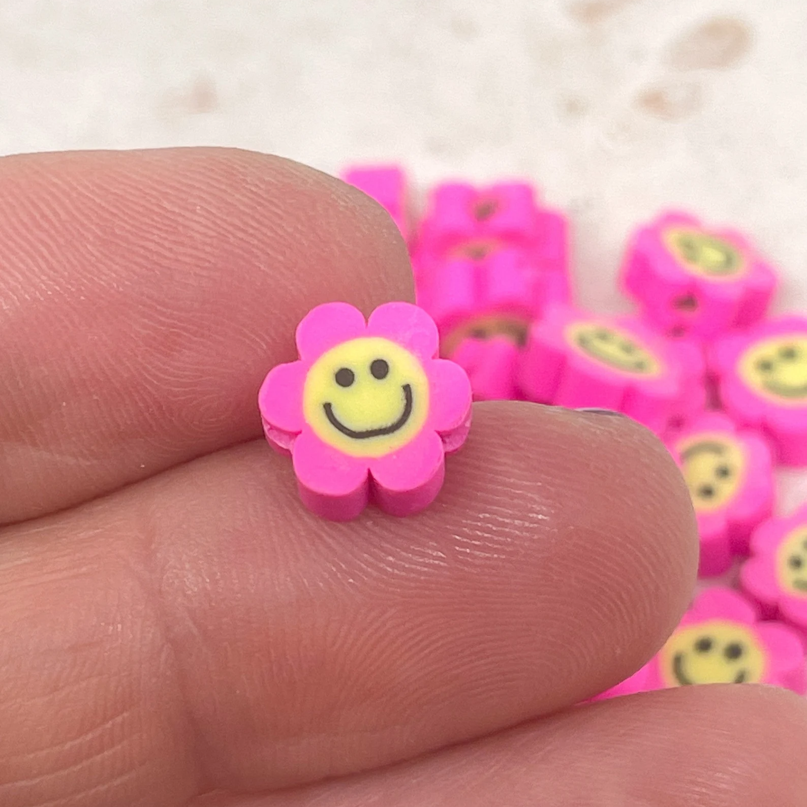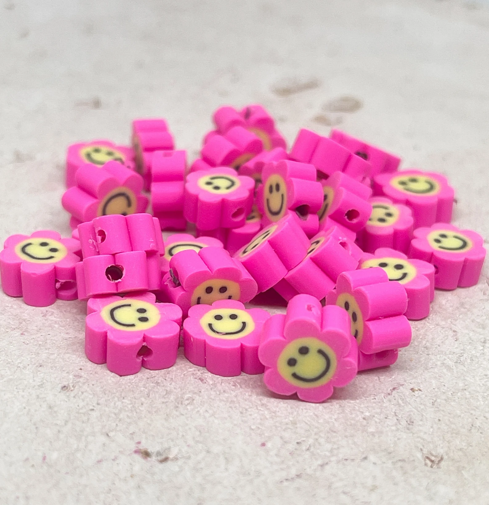 25 St. / 50 St. Polymer Clay Perlen, kleine Sonnenblumen, Gesicht Polymer Clay Pink