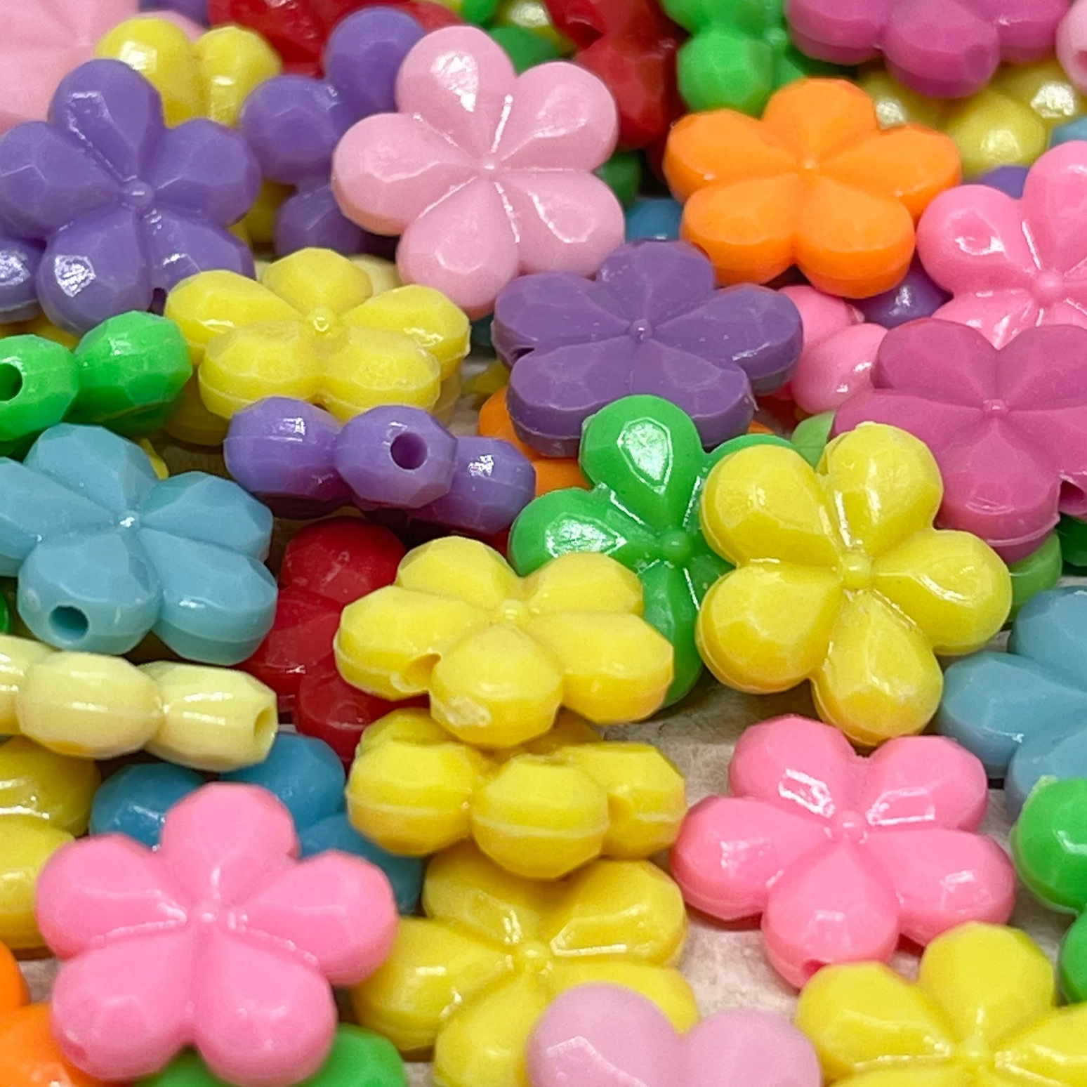 25 St. Acryl Blümchen, Blumen Perlen Bunt gemischt